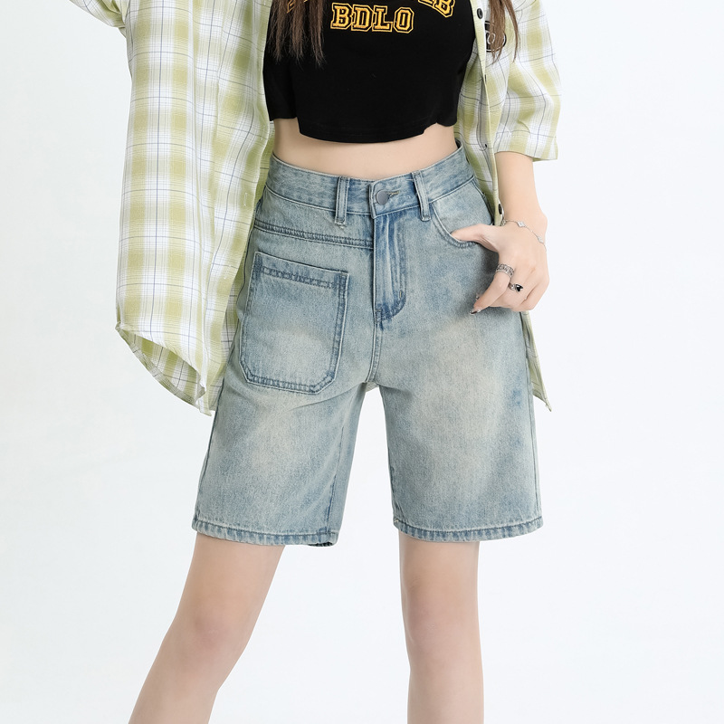 | nameOriginal | High Waist cropped spring/summer Denim shorts women's summer New loose slimming retro design straight mid-length pants fashion |