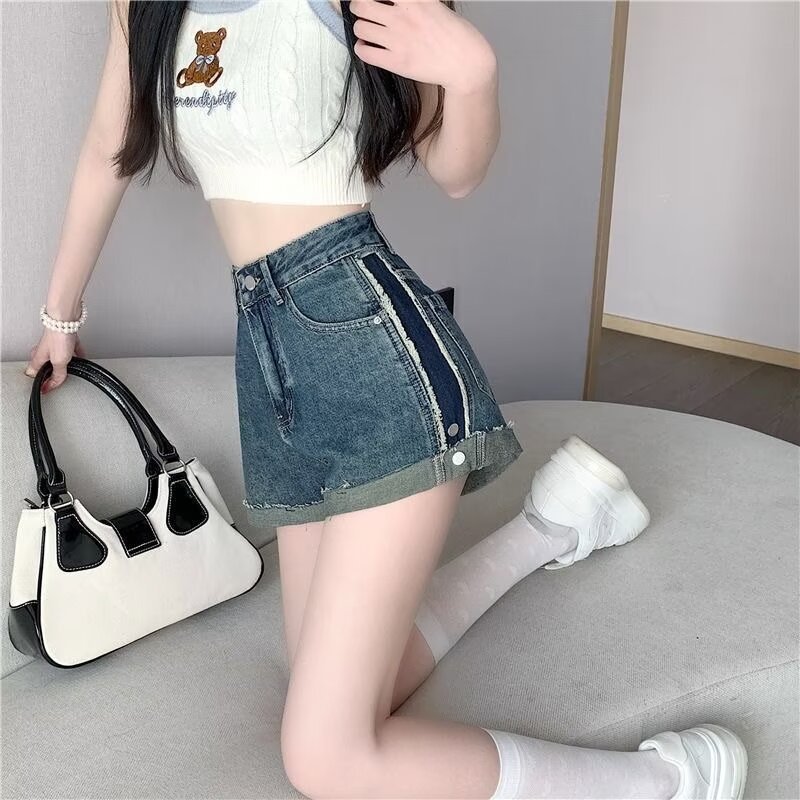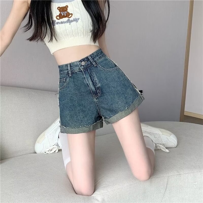 | nameOriginal | High Waist Curl Denim Shorts Women's 2024 Summer New Design Sense Slimming Loose All-Match Hot Pants for Hot Girls |
