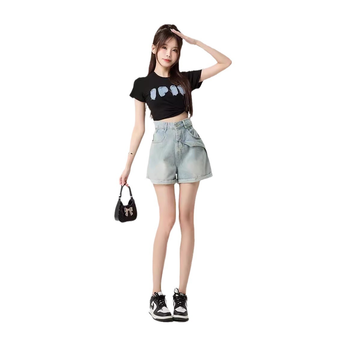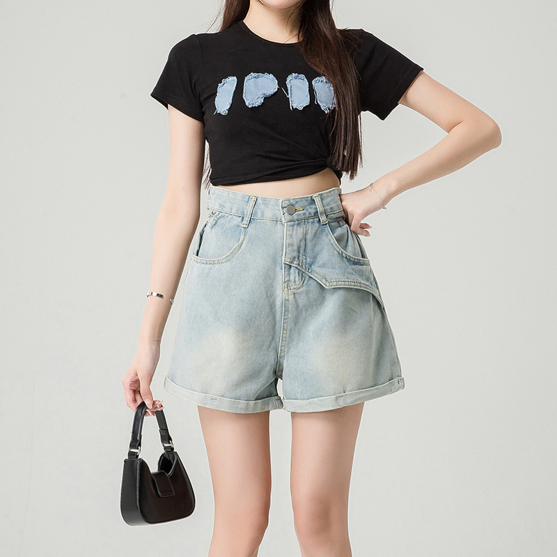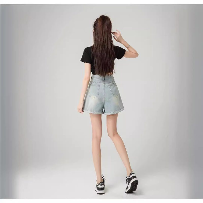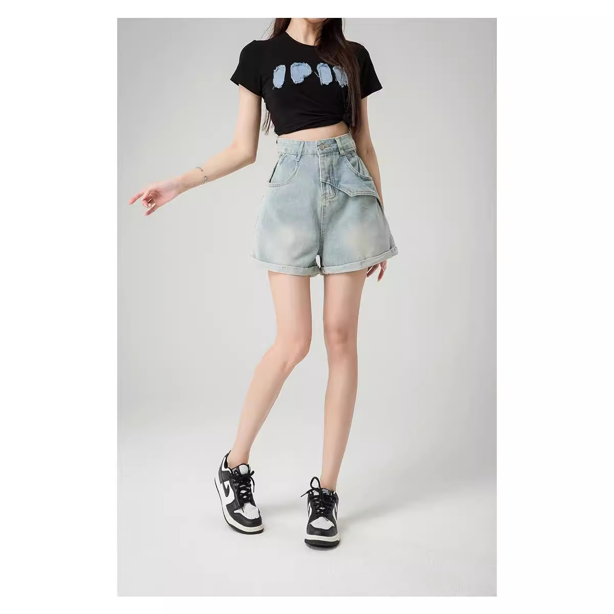 | nameOriginal | High Waist Denim Shorts Women's Summer 2024 New High Waist Pocket A- shape Slimming Wide Leg All-match Hot Pants for Hot Girls |