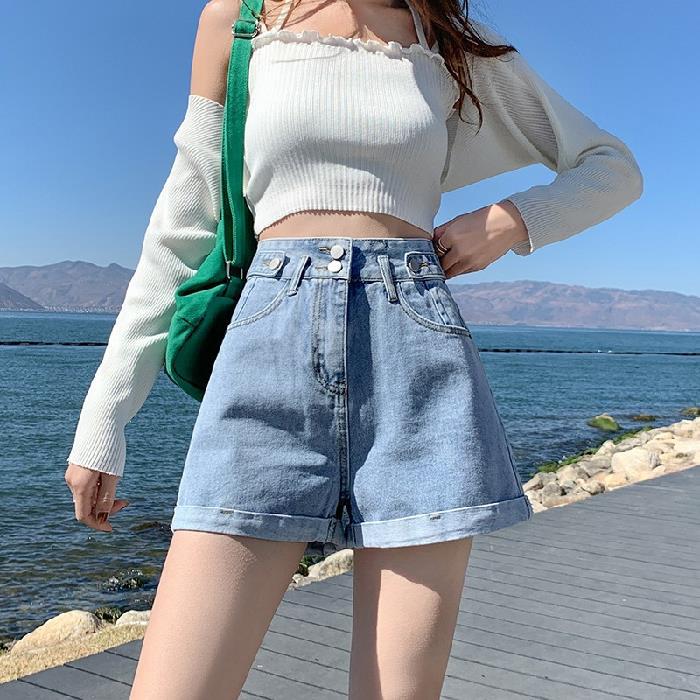 High Waist Denim Shorts Women's Summer Thin 2024 New Loose Slimming Straight Leg Wide Leg Simple Trendy Hot Pants