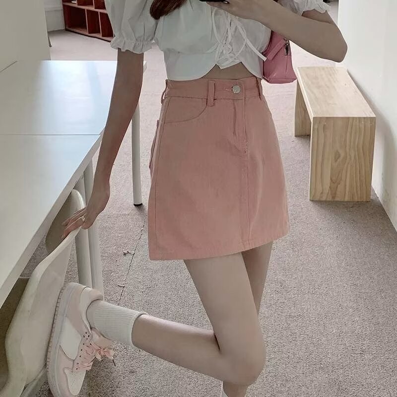 | nameOriginal | High Waist Denim Skirt Women's Summer Korean-style Slimming Solid Color Skirt plus size chubby girl All-match Hip A- line Skirt Trendy |