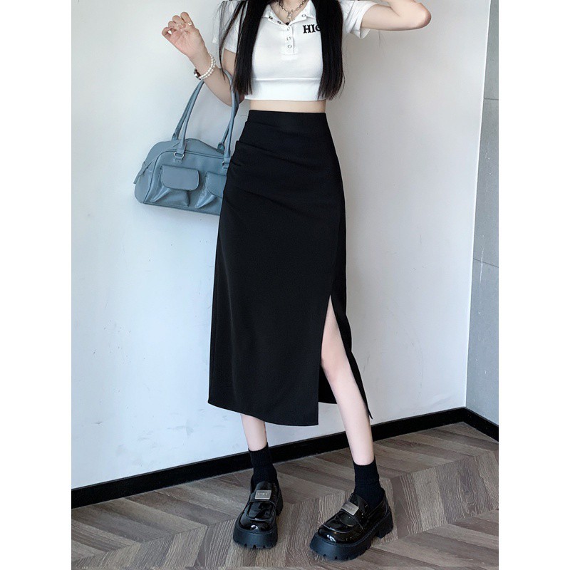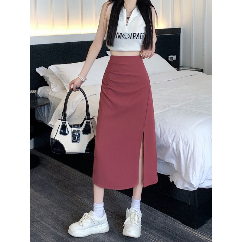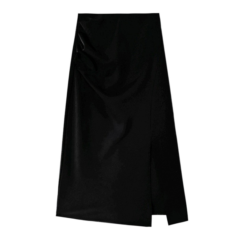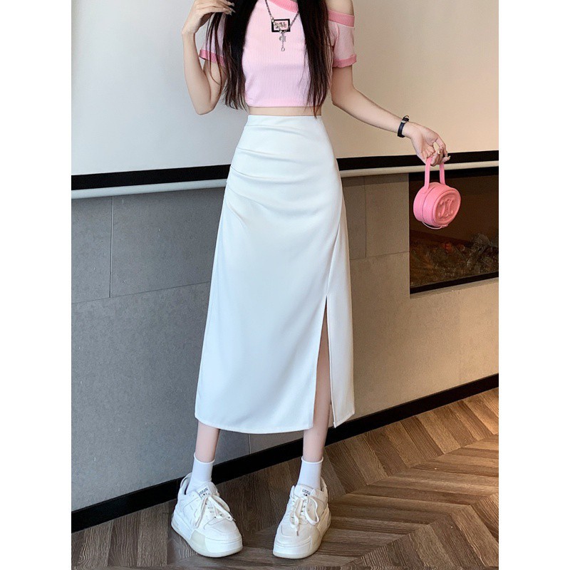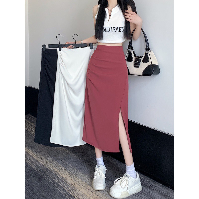 High Waist Draped Skirt for Small Women Summer 2024 New Vintage Split Skirt Mid-length Skirt