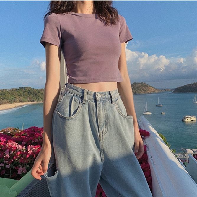 | nameOriginal | High waist exposed navel student short sleeve T-shirt women's 2022 new short Korean style slim Hyuna college style top ins fashion |