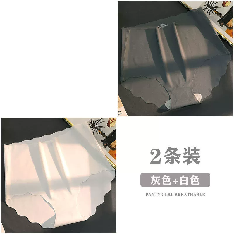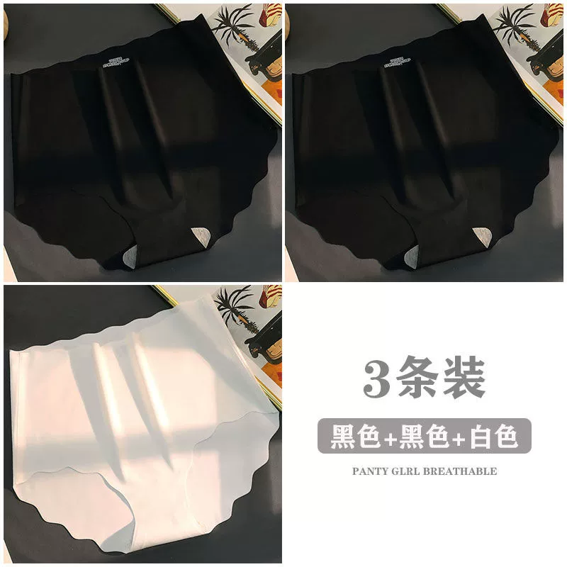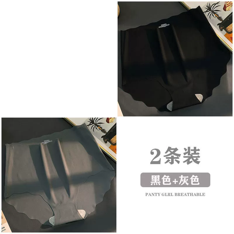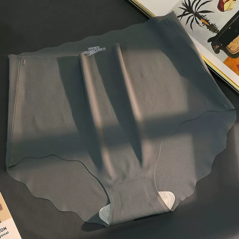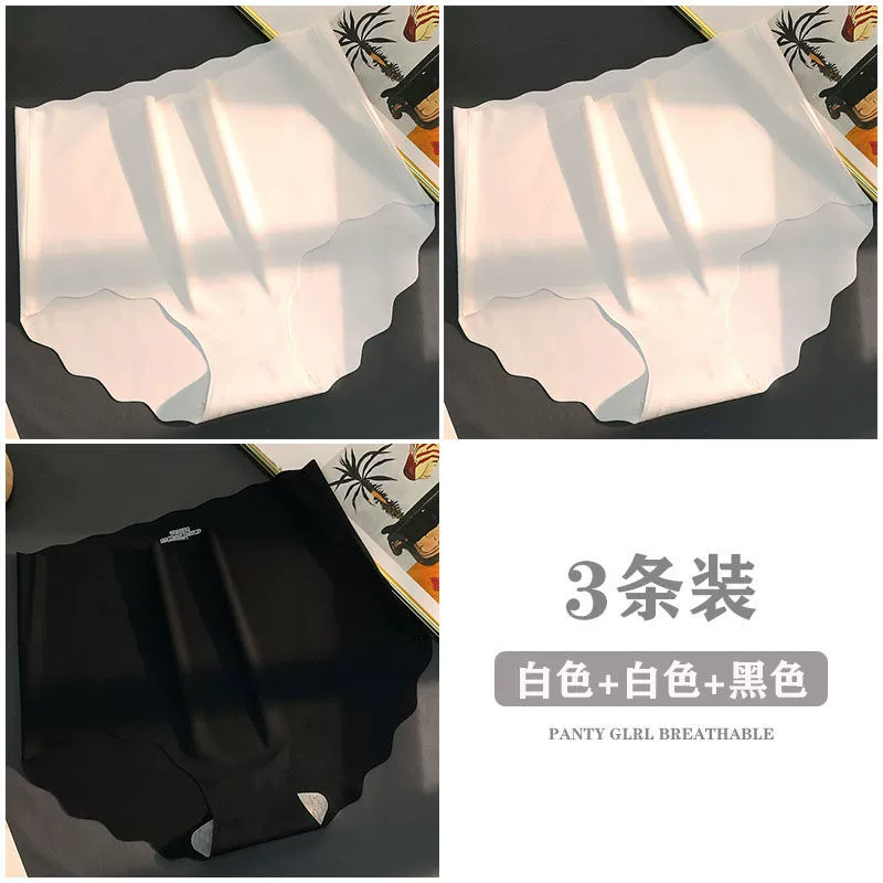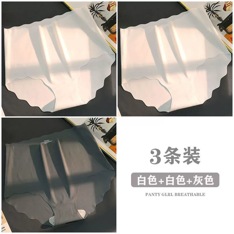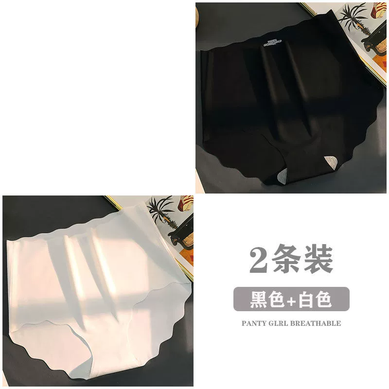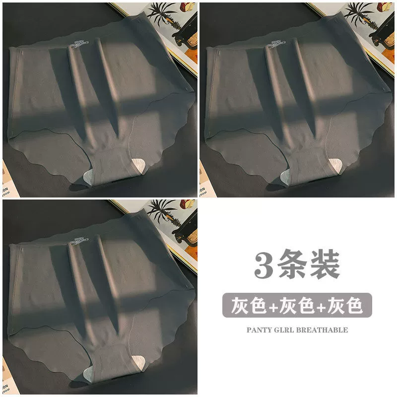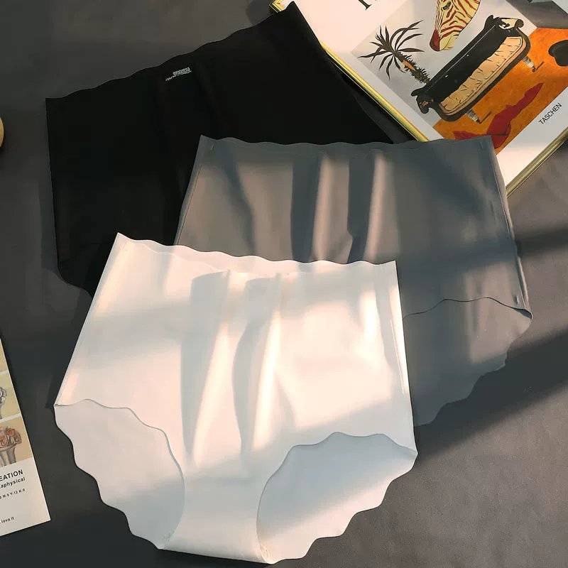 High-waist ice silk seamless panties for women, cotton crotch, summer thin, sexy mid-waist, black and white, gray belly-control briefs for women