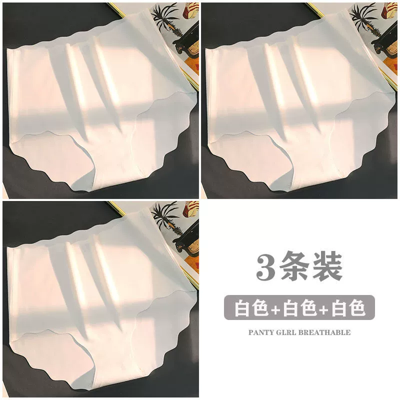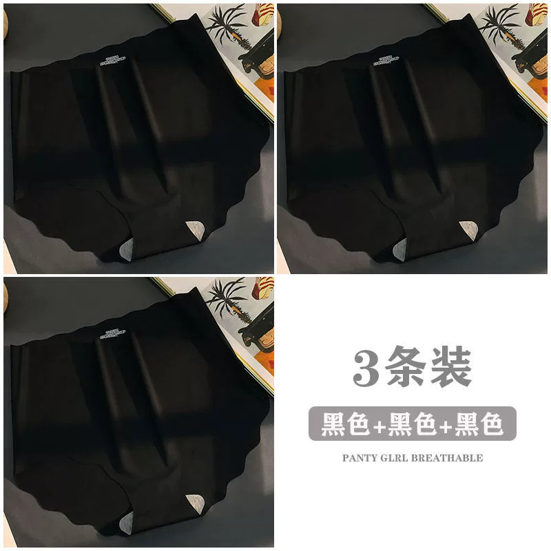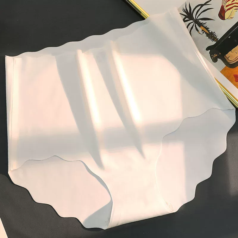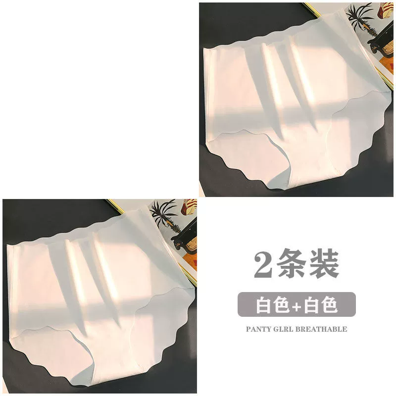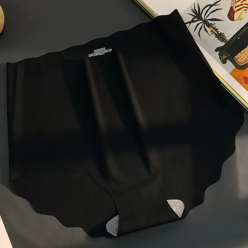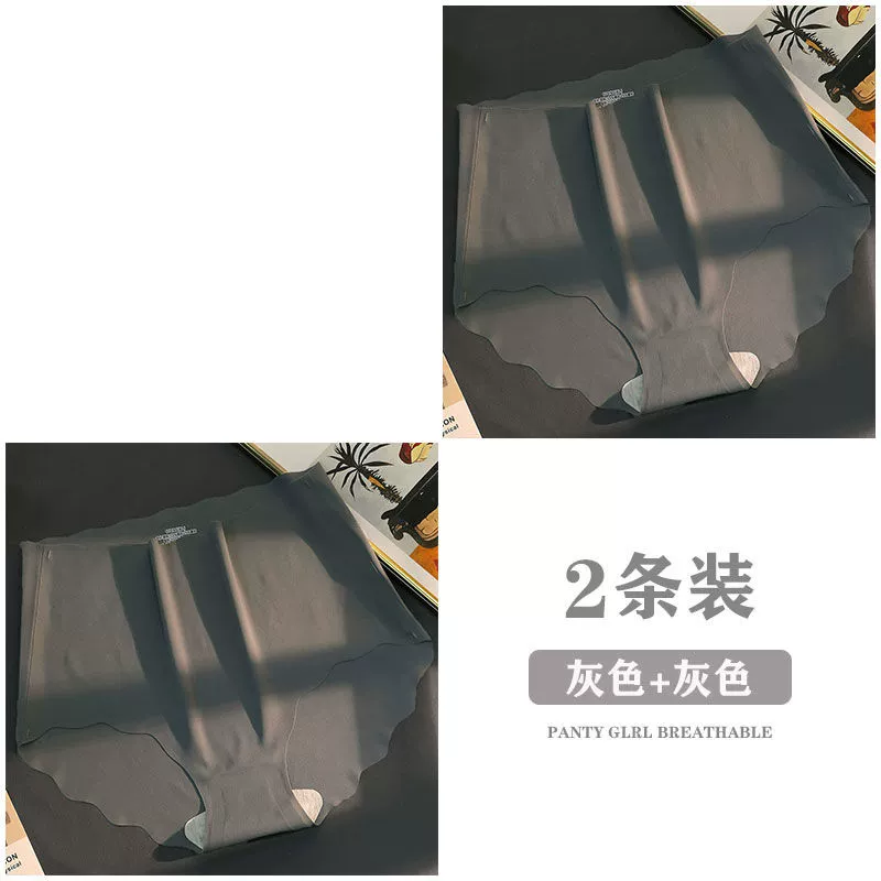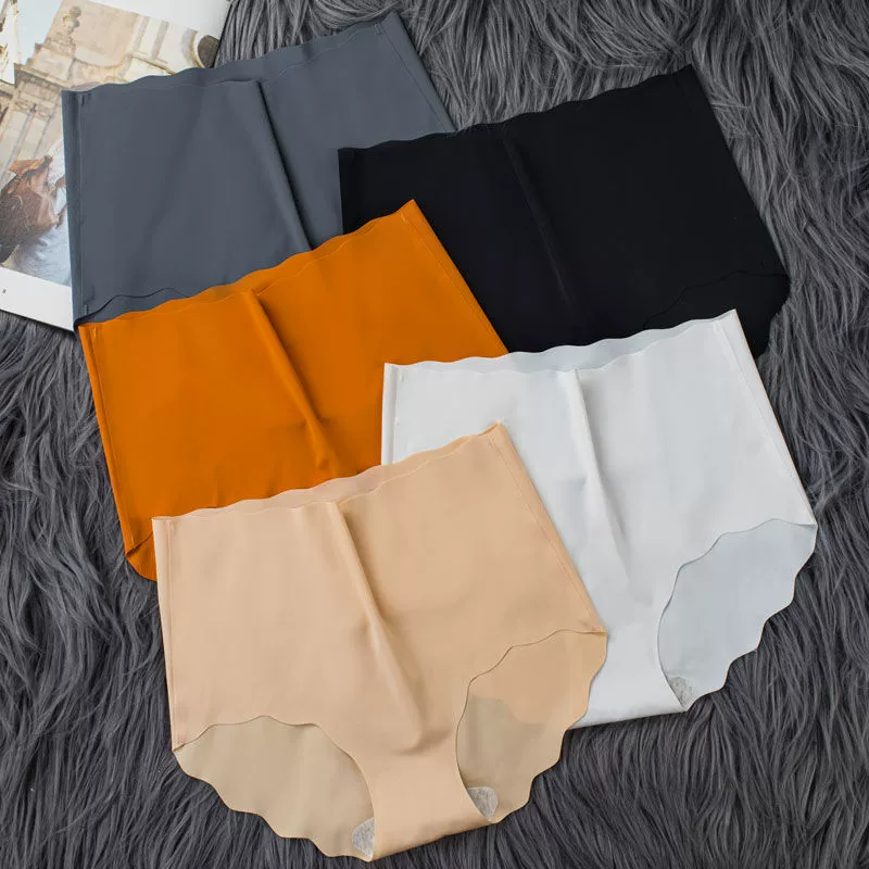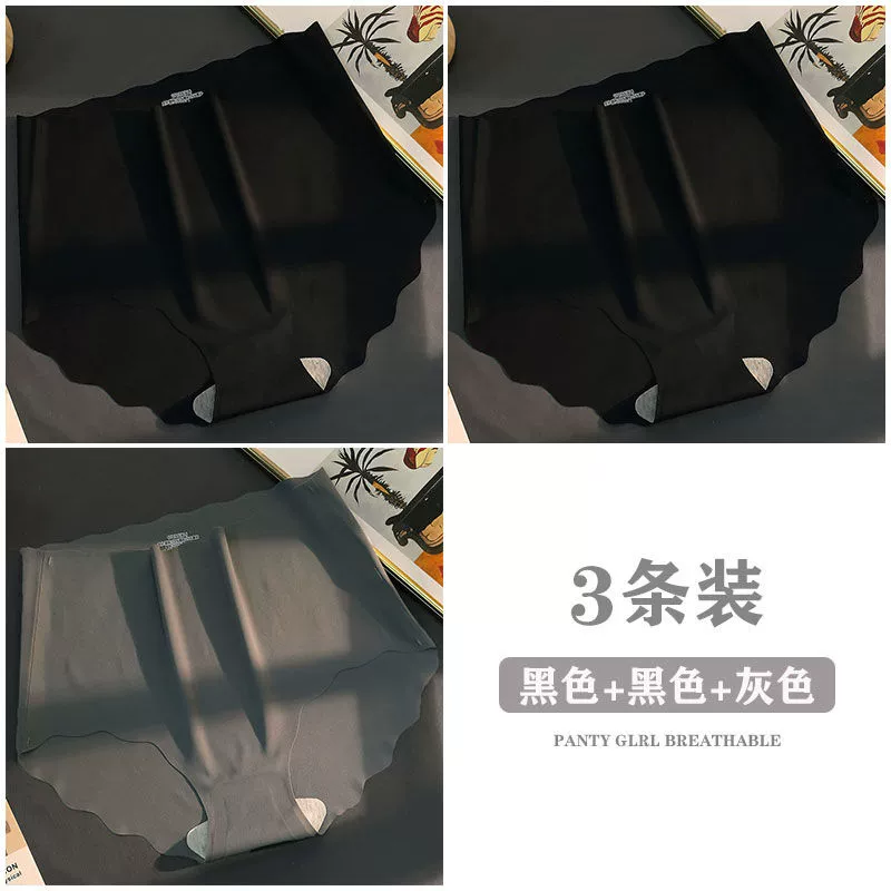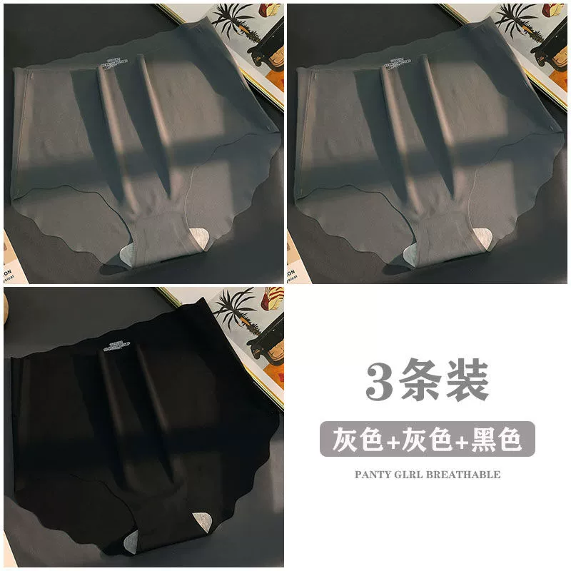 High-waist ice silk seamless panties for women, cotton crotch, summer thin, sexy mid-waist, black and white, gray belly-control briefs for women