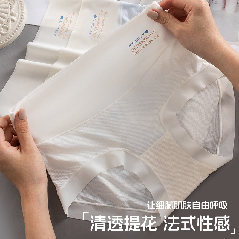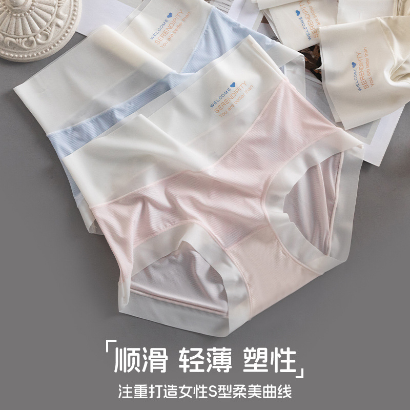High Waist Ice Silk Underwear Women's Seamless Abdominal Breathable Large Size Summer Thin Pure Cotton Antibacterial Crotch Mask Triangle Underpants