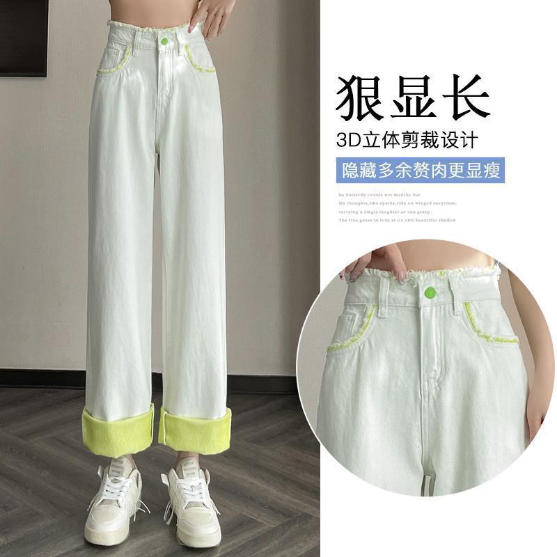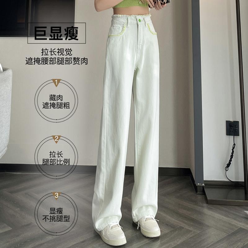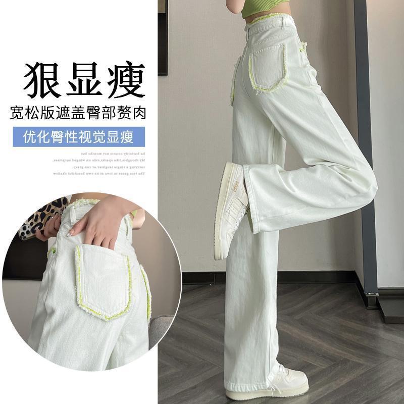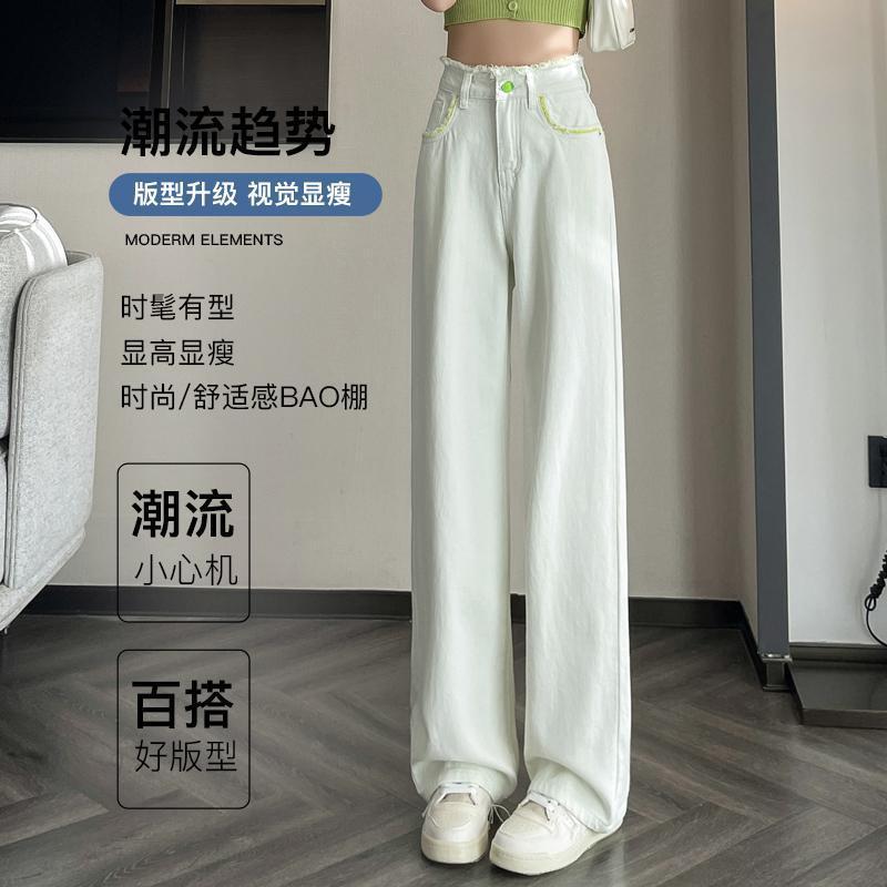 | nameOriginal | High Waist Jeans Women's Summer Thin 2024 New Arrival light green Rough Edge Ice Silk White Jeans for Small Men |