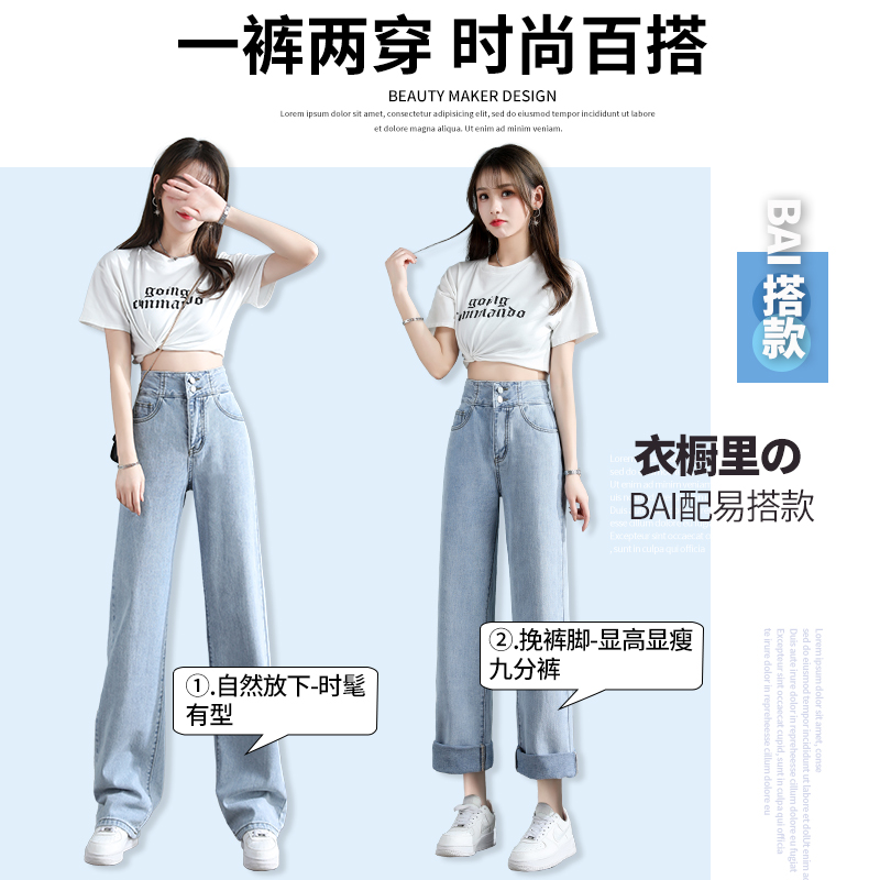 High Waist Jeans Women’s Summer Thin 2024 New Straight Tube Loose Dipped Short Wide Leg Pants Women’s Summer