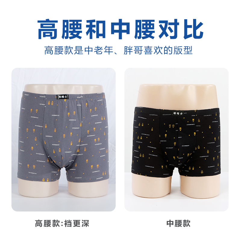 | nameOriginal | High Waist Men's Cotton Printed Underwear Plus Size Four-Corner Loose Breathable Middle-Aged Fat Men's Boxer Underwear |