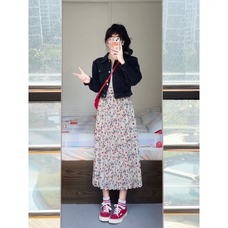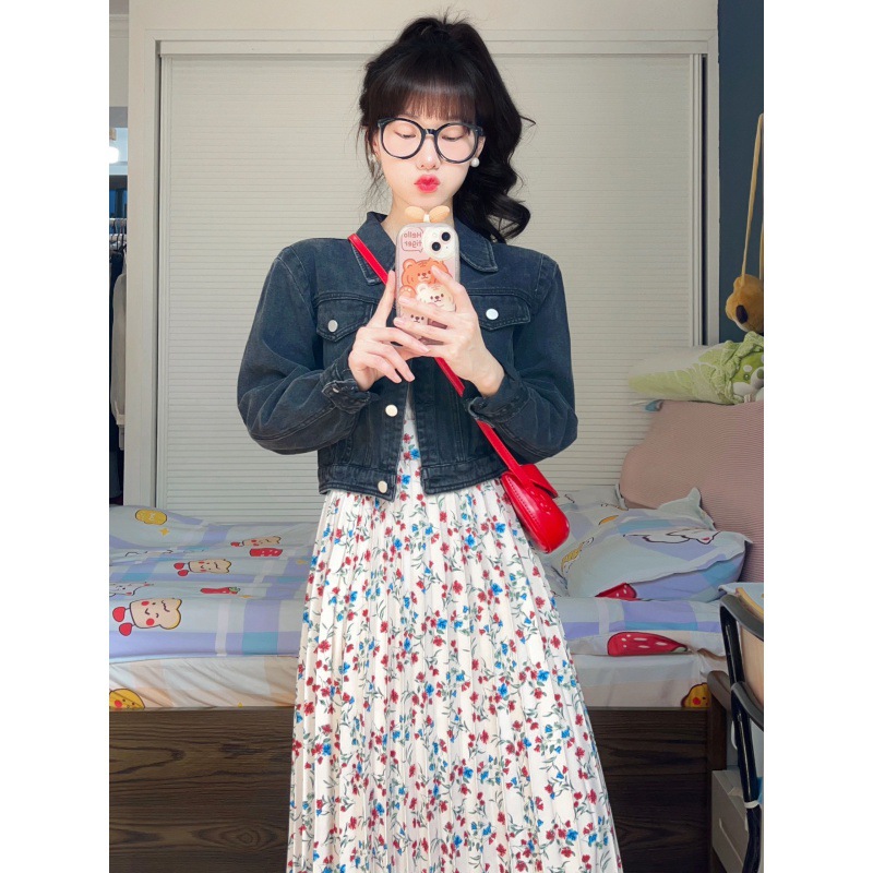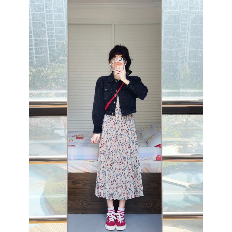 | nameOriginal | High Waist Pleated Skirt Floral Skirt Casual All-match Denim Coat Spring and Summer French Sweet Vacation Two-piece Set |