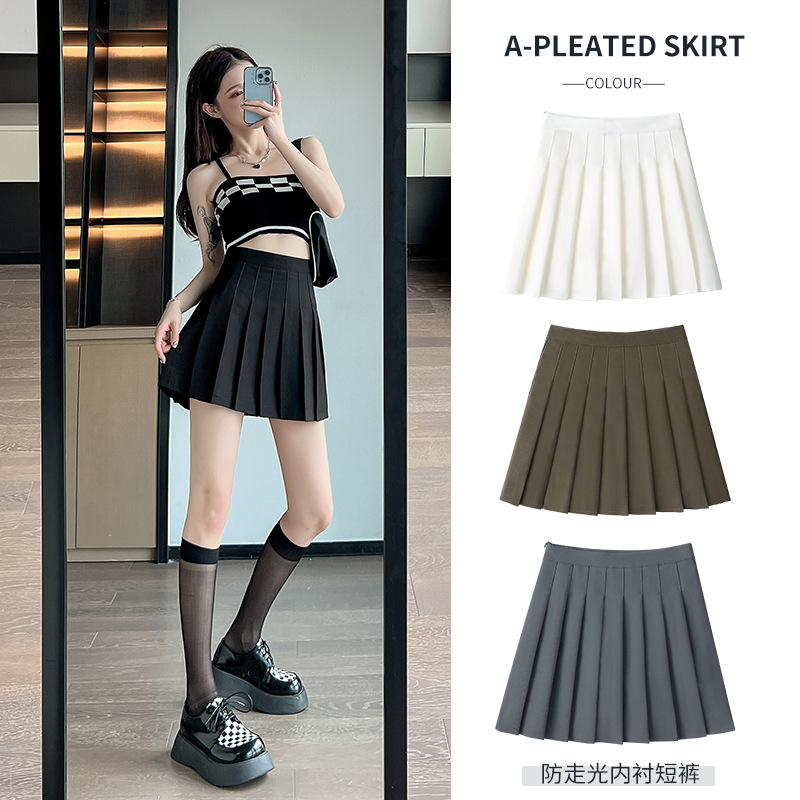 High Waist Pleated Skirt Women's Anti-running Light Lined Academy Style All-match JK Solid Color Short Skirt Skirt for Children