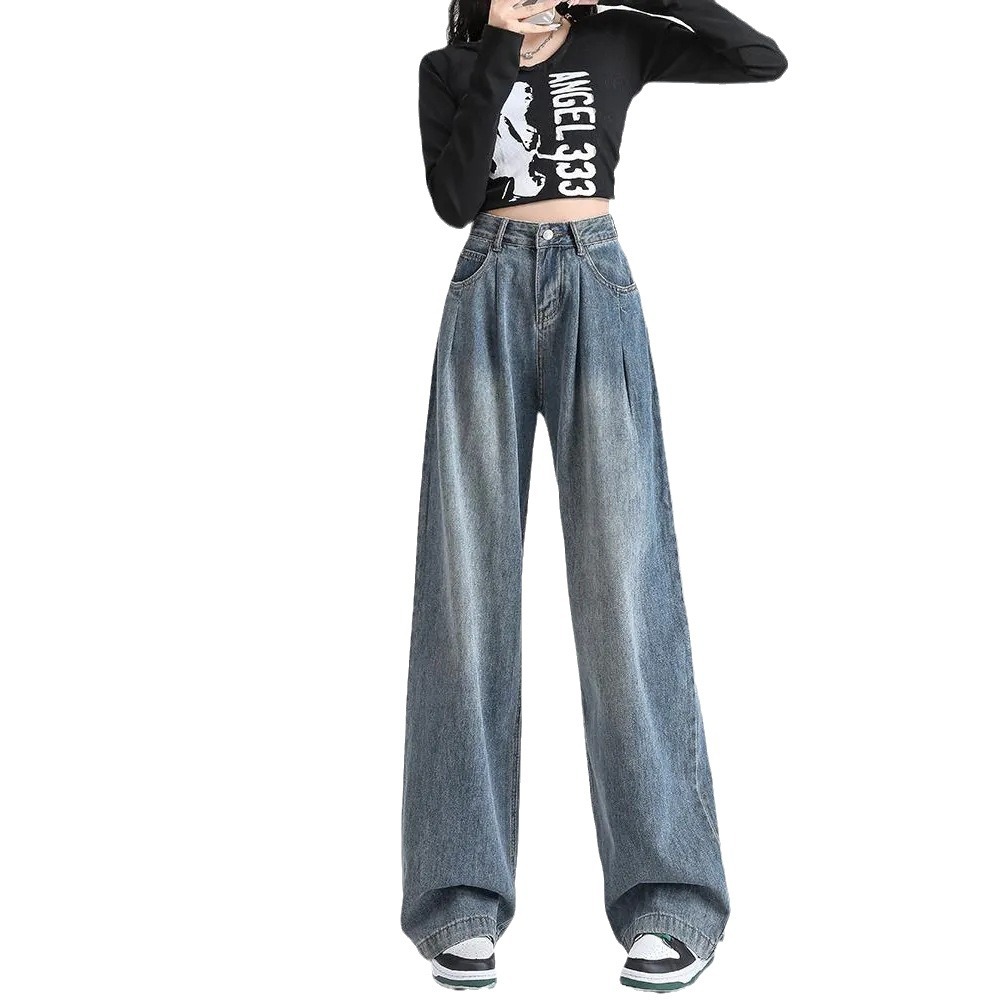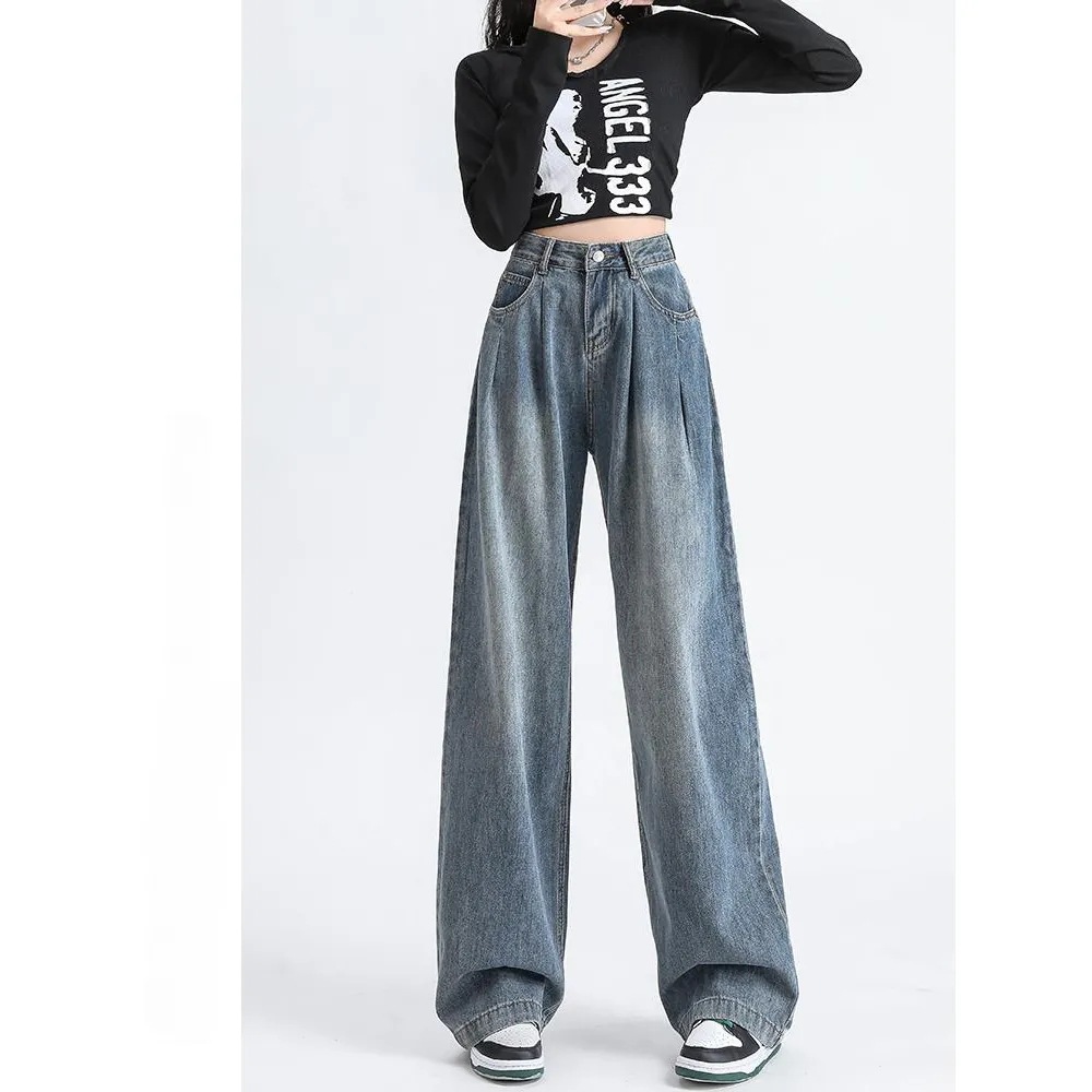 High Waist Pleated Wide Leg Jeans 2024 New Women's New Dipped Trousers American Style Trendy