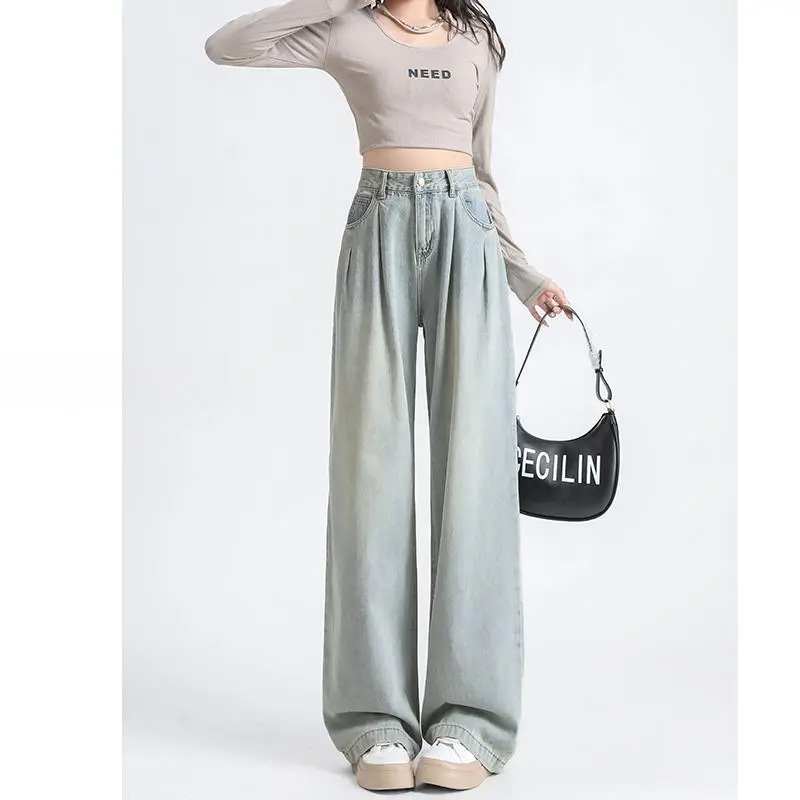 High Waist Pleated Wide Leg Jeans 2024 New Women’s New Dipped Trousers American Style Trendy