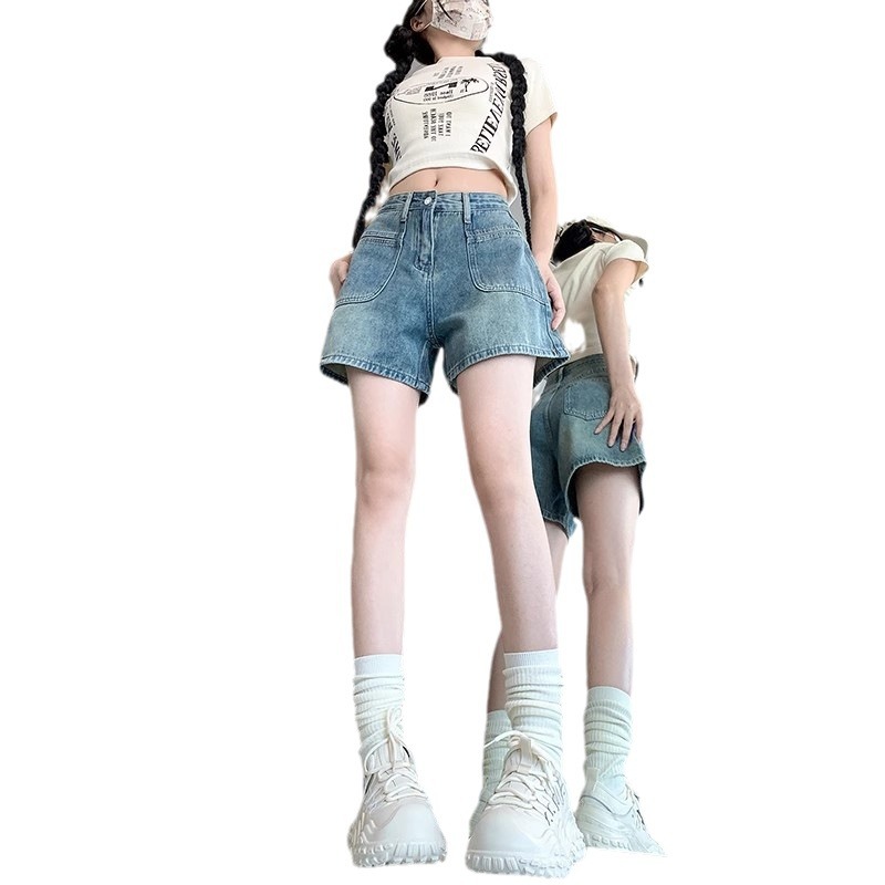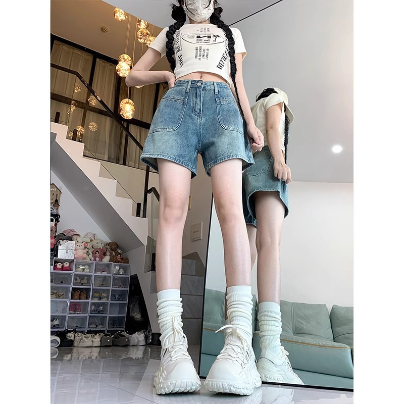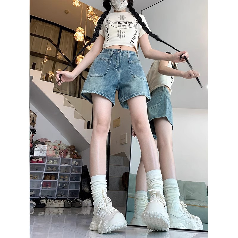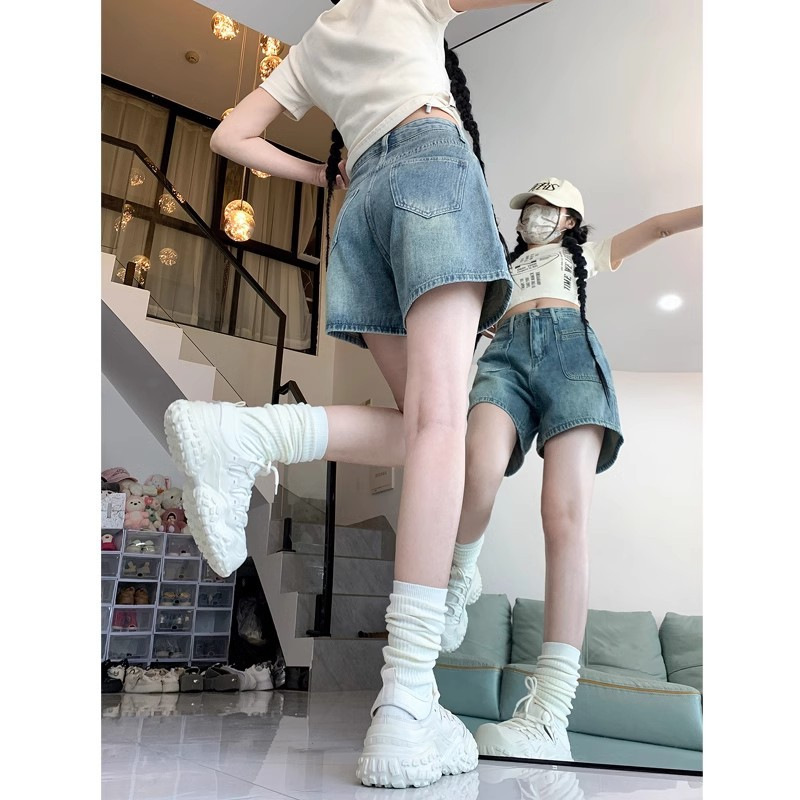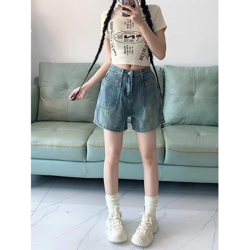 High Waist Retro Denim Shorts Women's Summer New Arrival plus size chubby girl Small Slimming All-Match Wide Leg A- Line Hot Pants