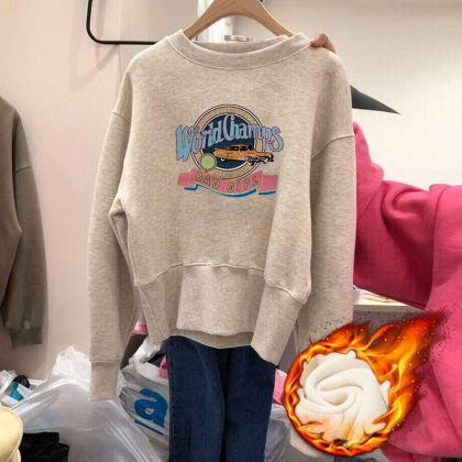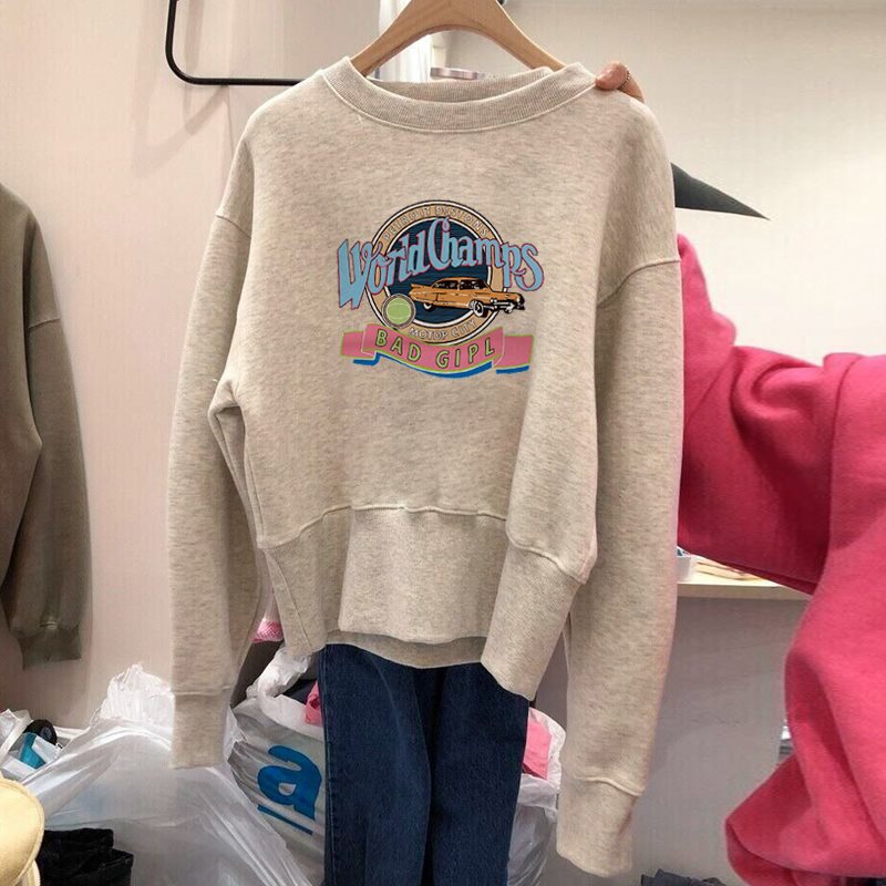 | nameOriginal | High Waist Short Round Neck Sweatshirt Women's Design Sense Niche Printed Long Sleeve Tight Waist Top Spring and Autumn Thin Distinctive Ins Trendy |