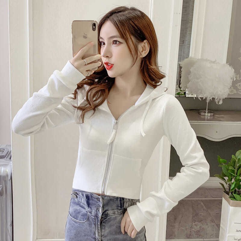 | nameOriginal | High Waist Short Short Hooded Sweatshirt Jacket Women's Spring and Autumn 2023 New Zipper Long Sleeve Tight Waist Slimming Top |