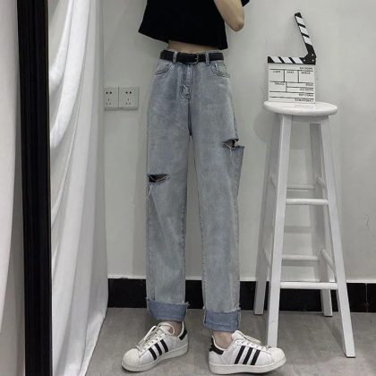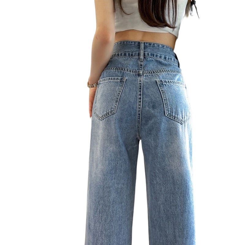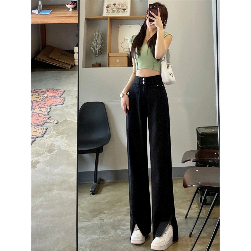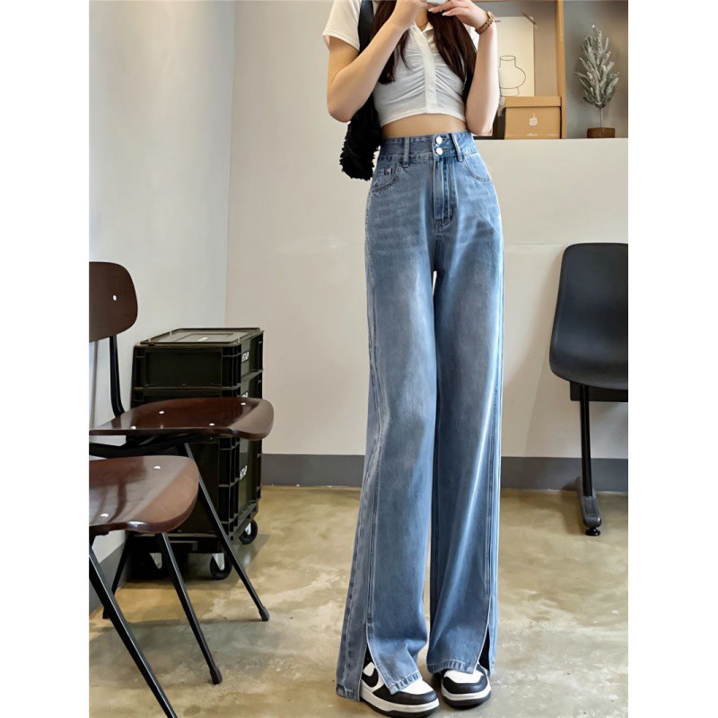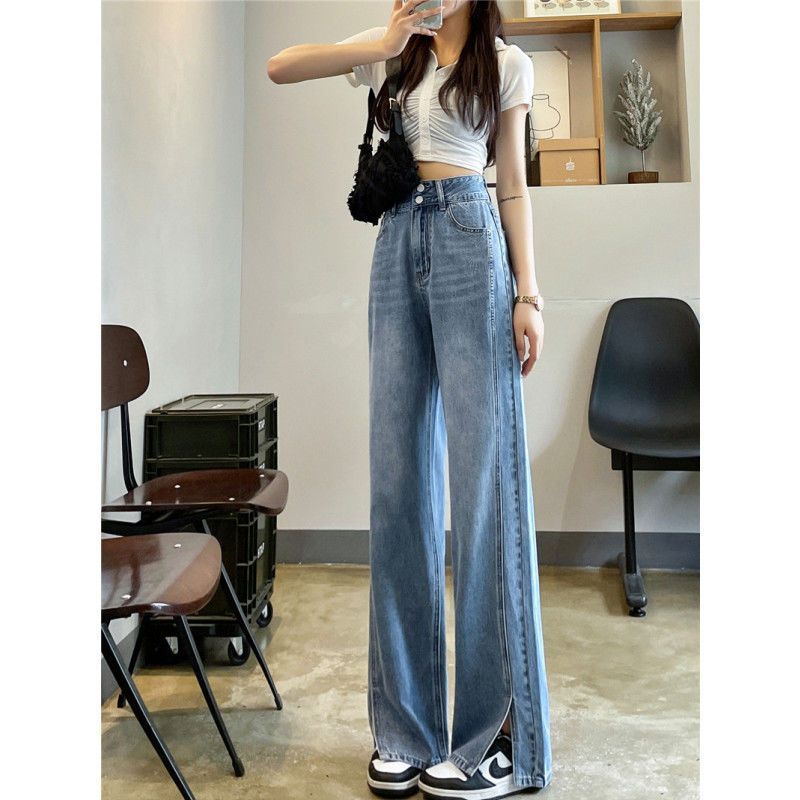 High Waist Split Straight Jeans Women’s Thin Slimming Loose Wide Leg Pants for Spring and Summer