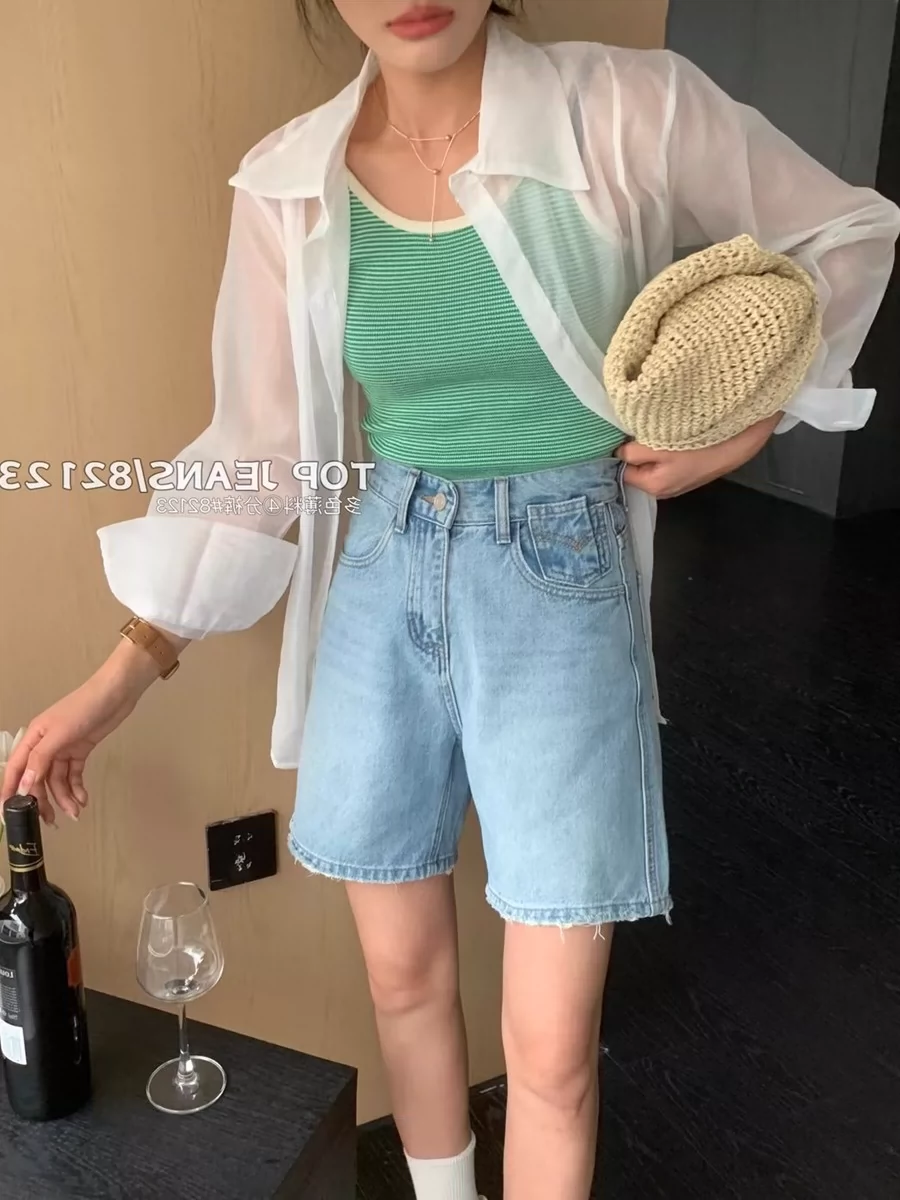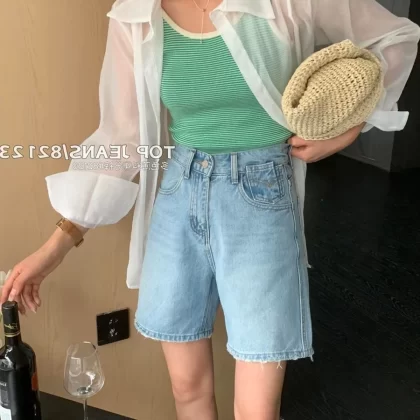 | nameOriginal | High-waist washed blue casual wide-leg denim shorts |