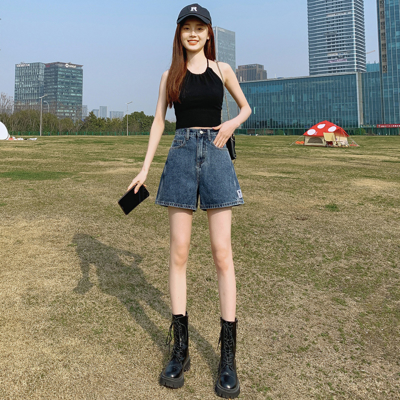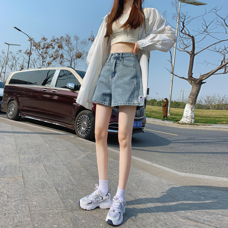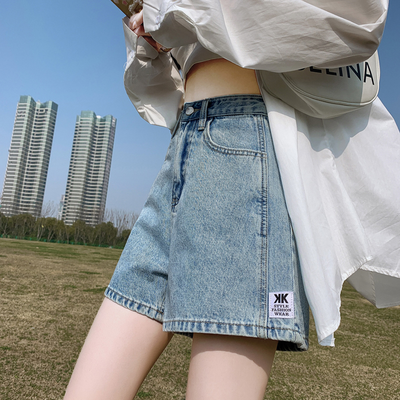 | nameOriginal | High Waist Wide Leg A- shaped Denim Shorts Women's 2024 Summer New Loose Slimming 4-point Small Light Color Hot Pants |