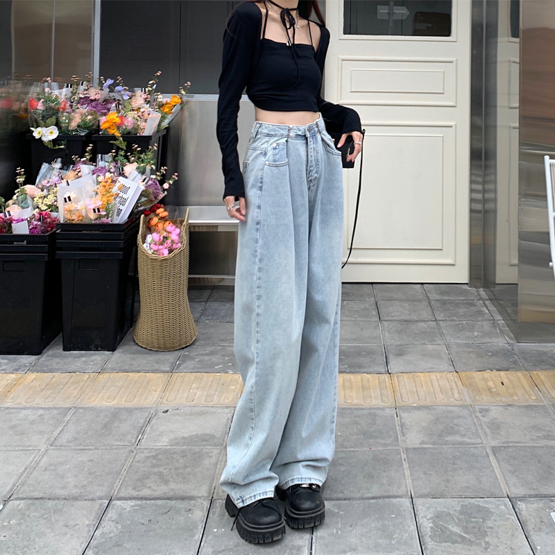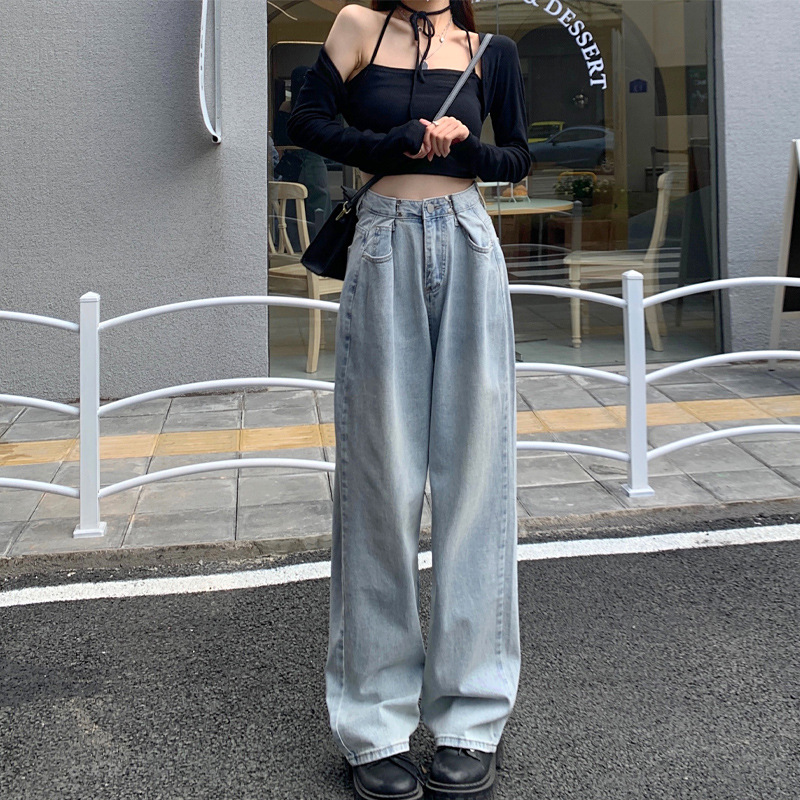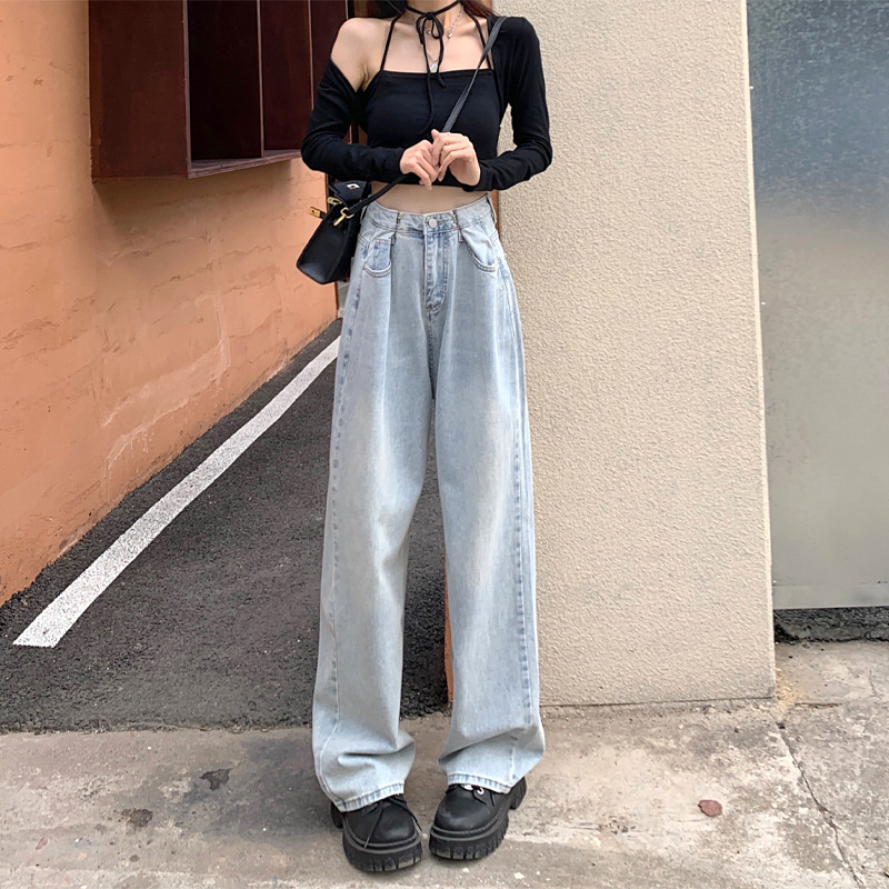 | nameOriginal | High Waist Wide Leg Jeans Women's Hot Girls Tight Waist Double Buckle Light Color bm Spring and Summer Slimming Straight Dipped Small Hole |