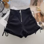 High-waisted A-line drawstring zipper sexy hot girl shorts