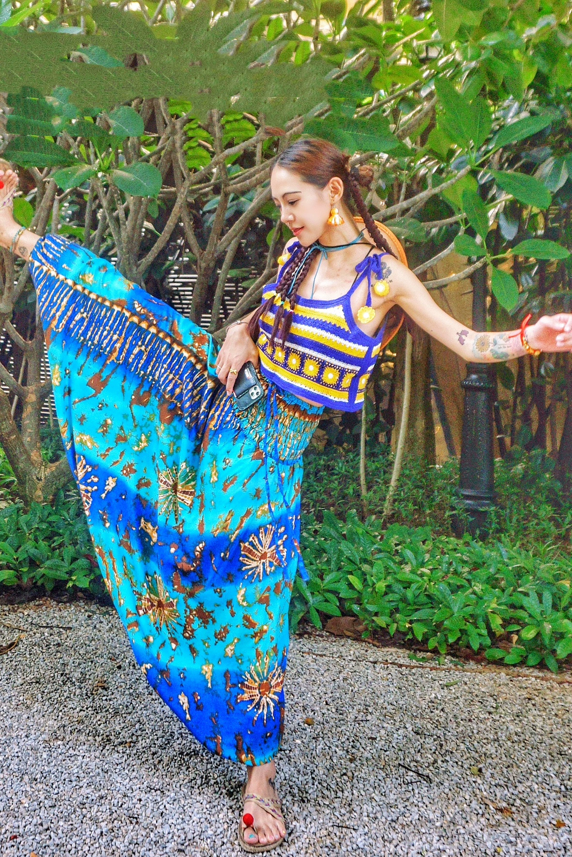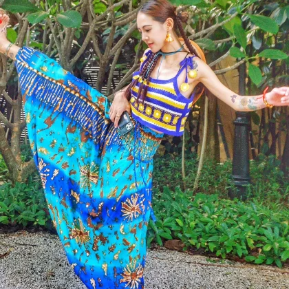 High-waisted boho loose-fitting beach resort trousers
