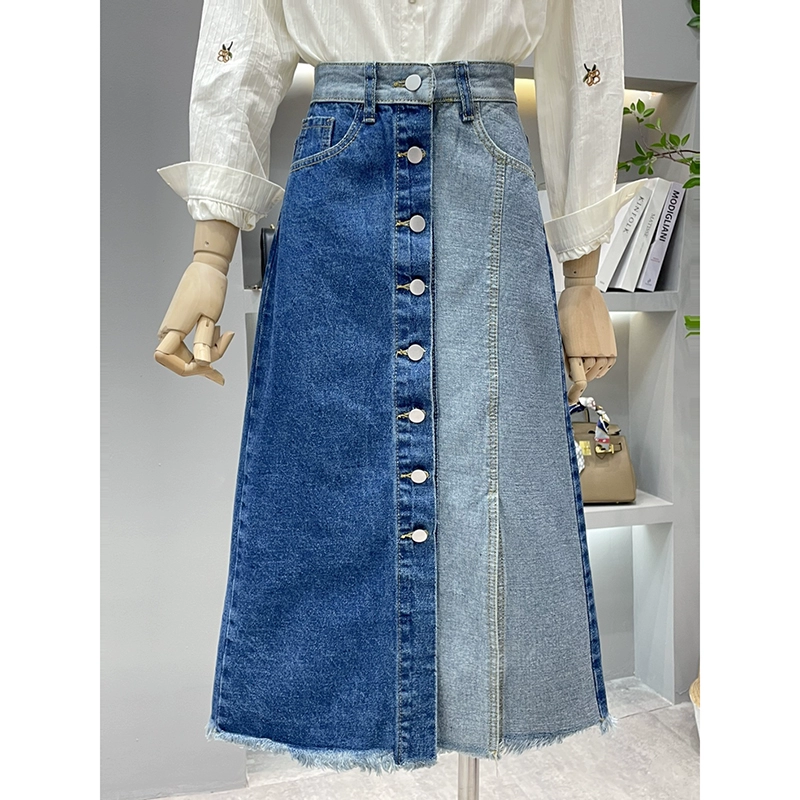 | nameOriginal | High-waisted denim skirt for women spring 2024 new Hong Kong style retro color-blocked A-line skirt that covers the flesh and looks slimming mid-length skirt |