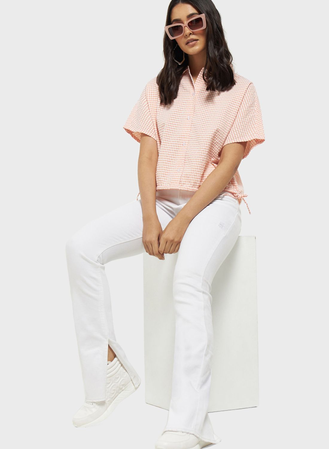 High-waisted jeans with a flared cut.