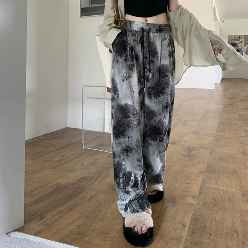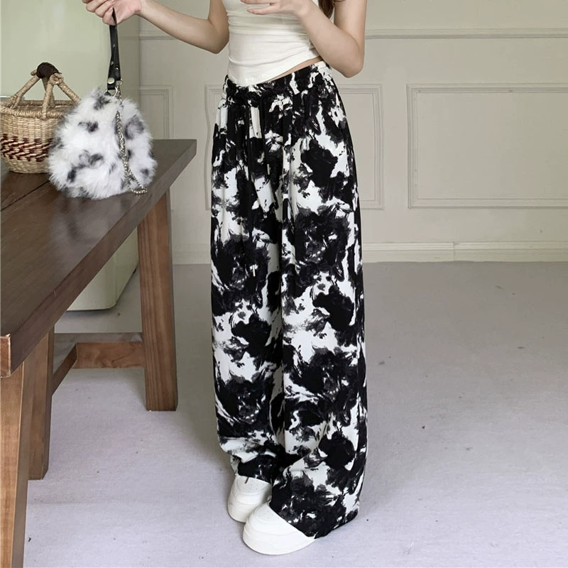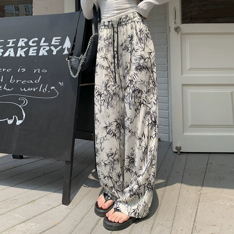 High-waisted loose chiffon casual pants for fat girls with pear-shaped body