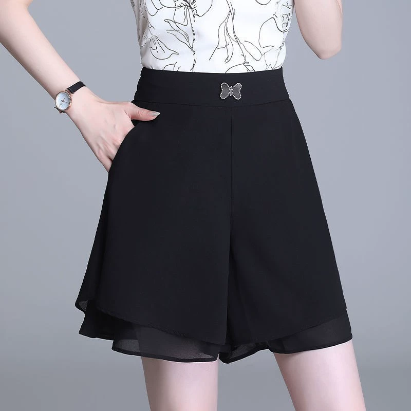 High-waist loose double-layer anti-exposure thin wide-leg pants
