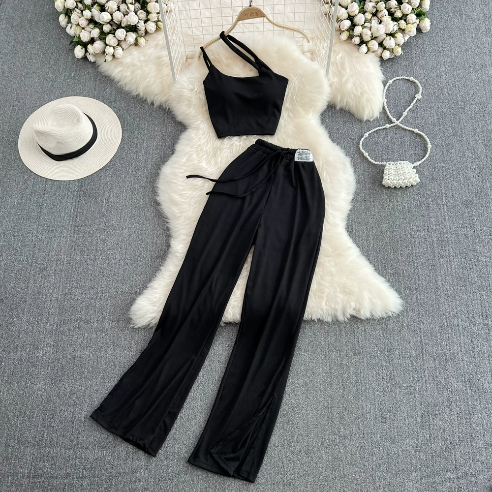 | nameOriginal | High-waisted, loose, straight-leg, slope-neck fashion suit |