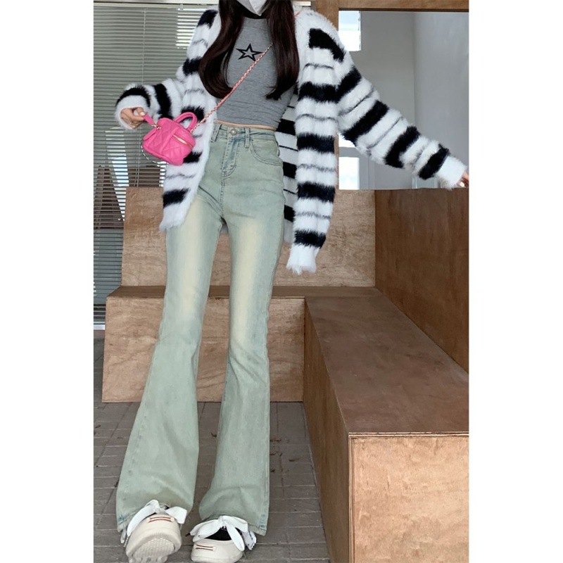 High-waisted micro-blared jeans 2024 new American-style high street yellow mud dyed flared pants for female students Korean-style trendy slimming