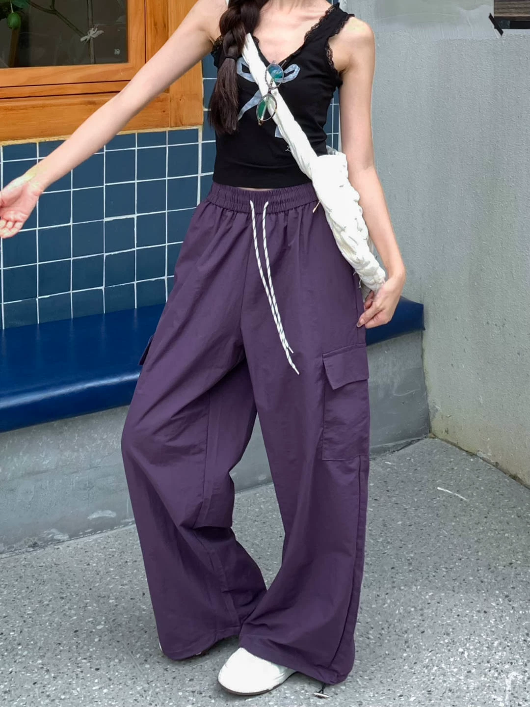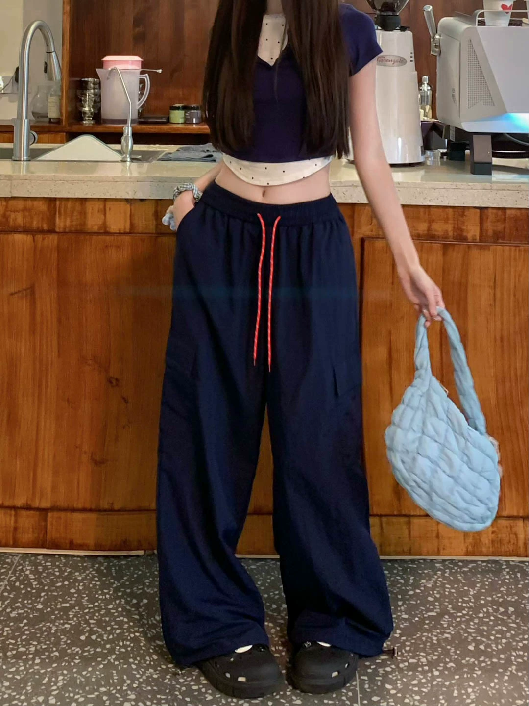 | nameOriginal | High-waisted pocket wide-leg floor-length pants ins drawstring |