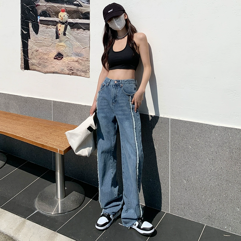| nameOriginal | High-waisted retro raw edge straight jeans for women 2023 spring women's design niche loose high street wide leg pants |