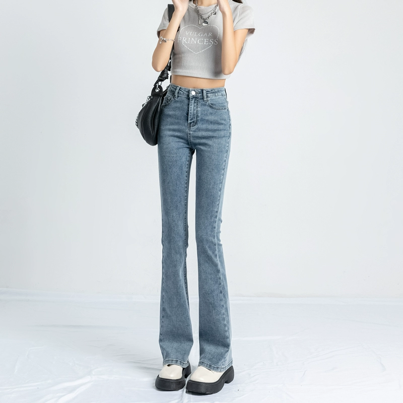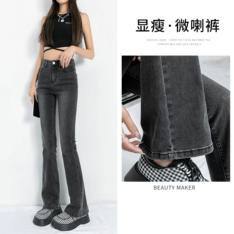 | nameOriginal | High-waisted slim-fit smoke gray retro micro-flared jeans |