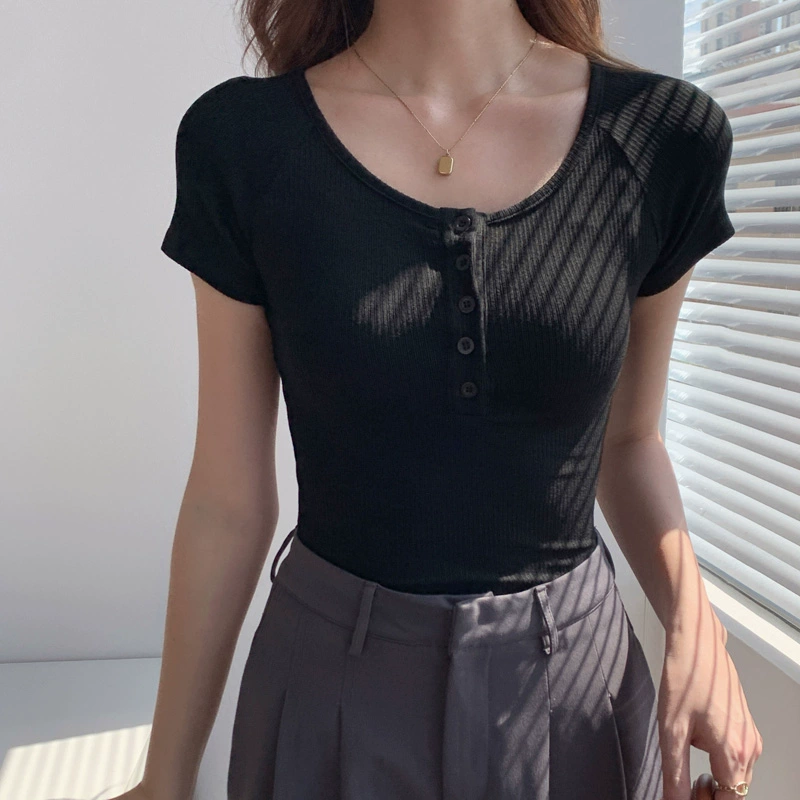 High-waisted slim-fitting bottoming design slimming short-sleeved T-shirt