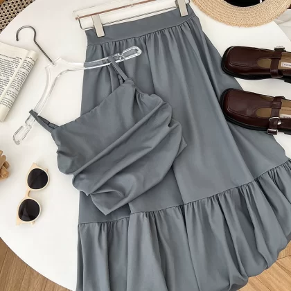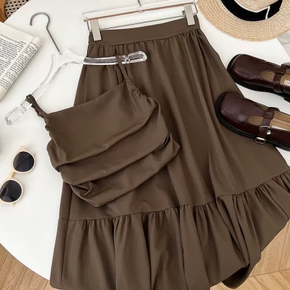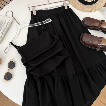 | nameOriginal | High-waisted slimming ruffled mid-length two-piece suspender set |