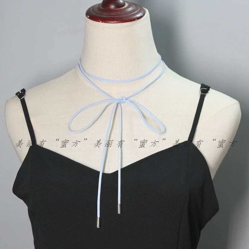 High waist solid color neck chain pendant versatile bow for men and women