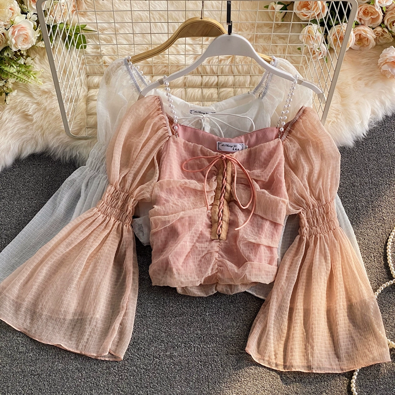 | nameOriginal | High-waisted square-neck slim-fit pleated crop top with suspenders |