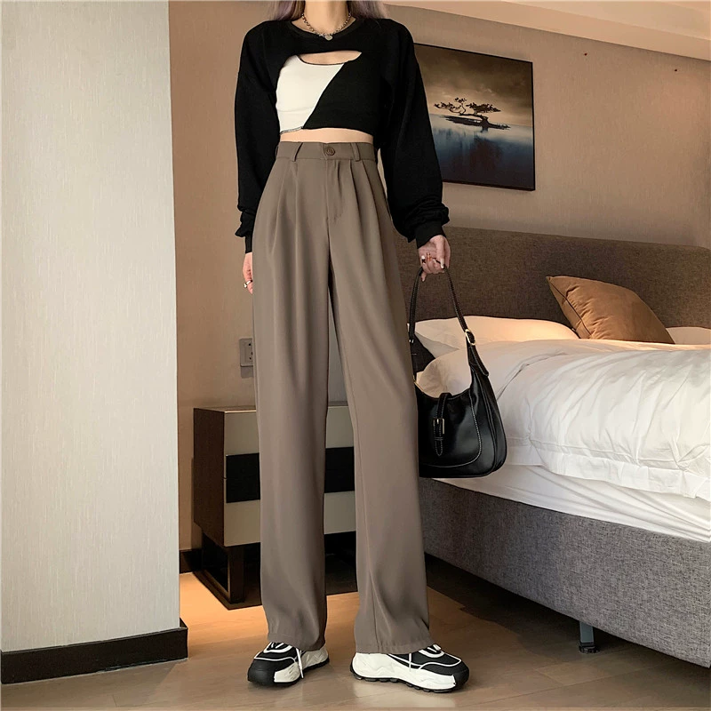 | nameOriginal | High-waisted wide-legged plus size casual straight suit pants for fat women |