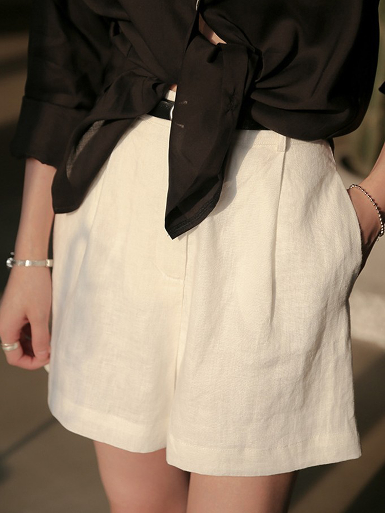 High-waisted, wide-legged women's summer slimming casual linen shorts