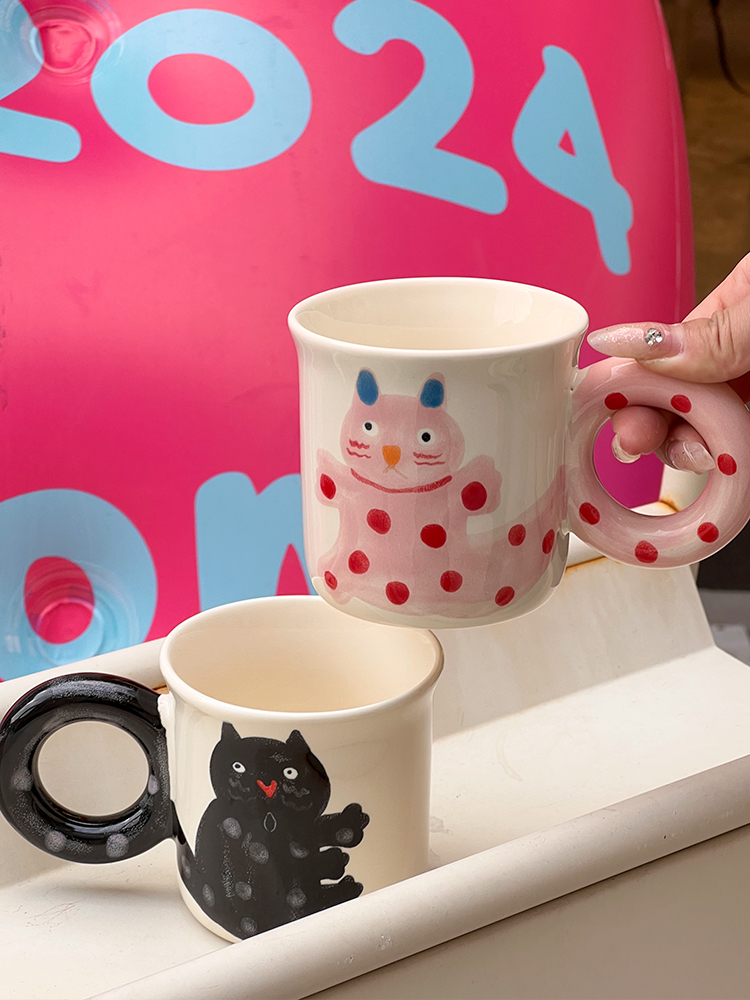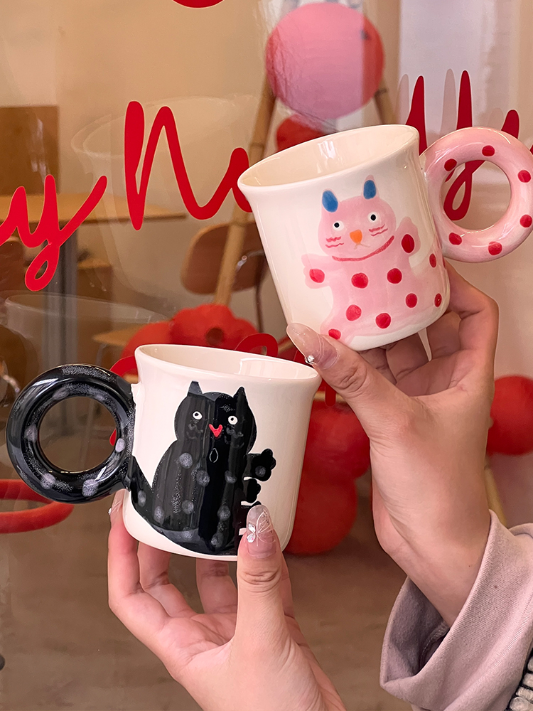 | nameOriginal | High Yan Value Hand-painted Illustration Cat Mug Children's Fun Ceramic Water Cup Couple Cup Coffee Cup Funny Birthday Gift |