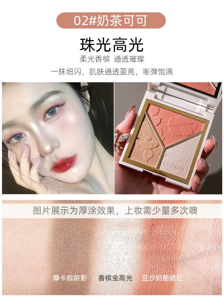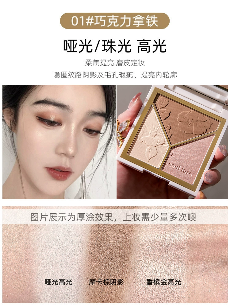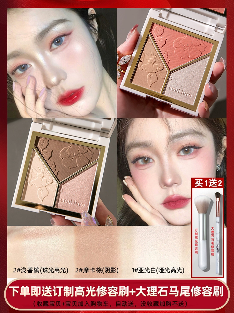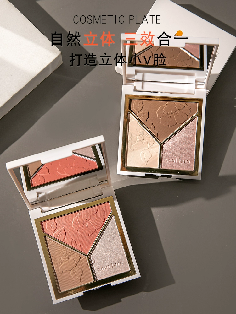 Highlight contouring palette glitter face brightening matte shadow nose shadow powder two-purpose combination blush three-in-one palette