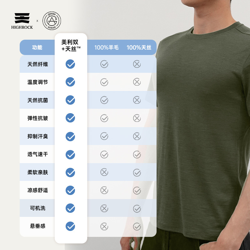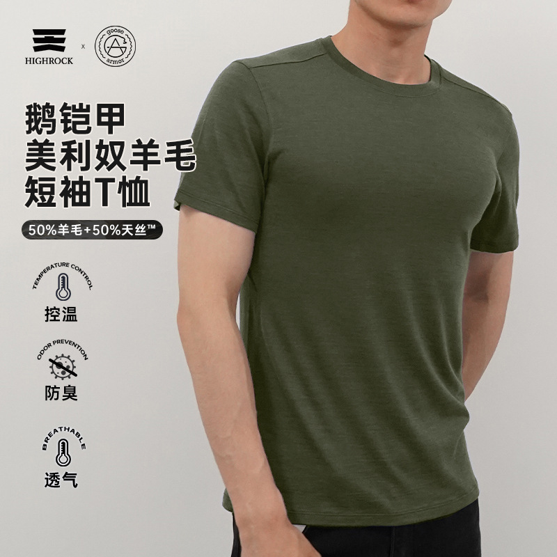 | nameOriginal | highrock Tianshi Goose Armor Merino Wool 50% Tencel Outdoor Sports Short-sleeved Quick-drying T-shirt Breathable |