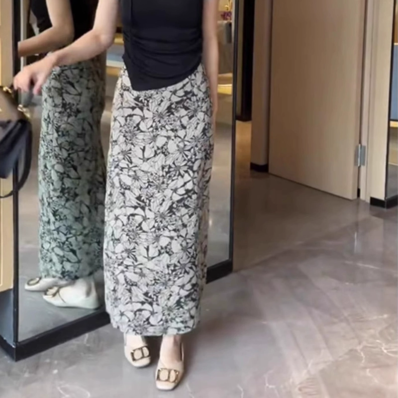 | nameOriginal | Hip-covering summer acetate satin high-end floral skirt |