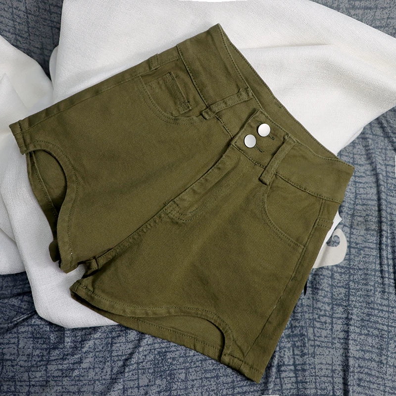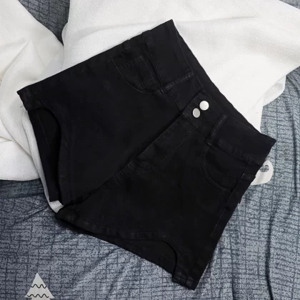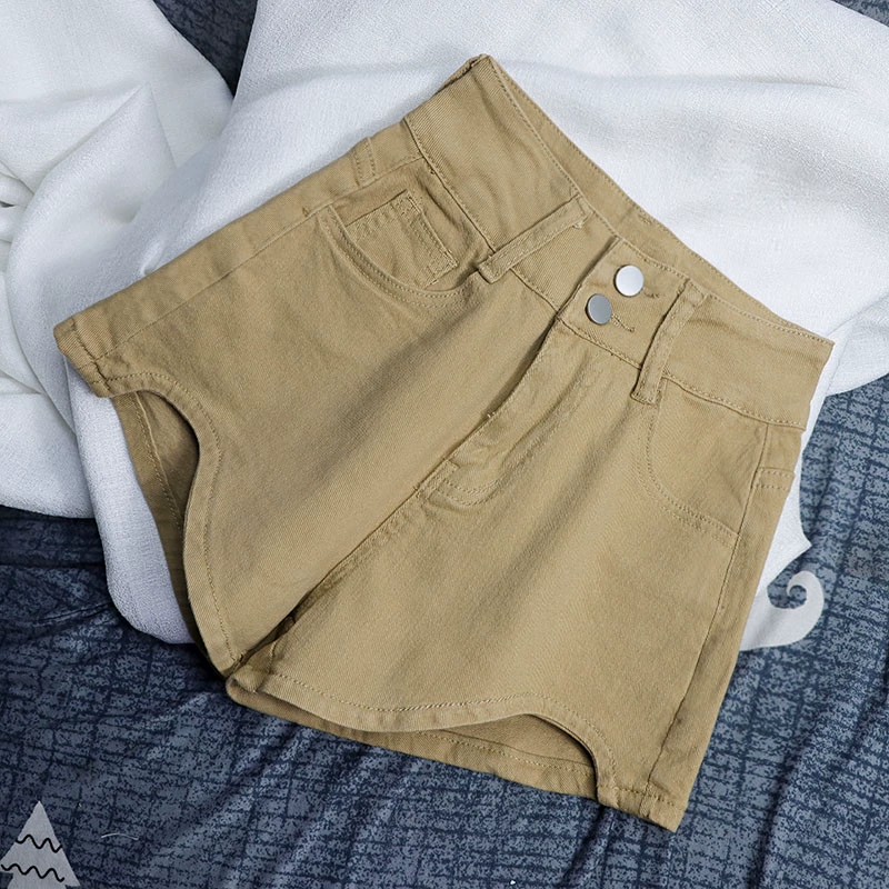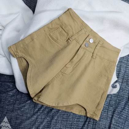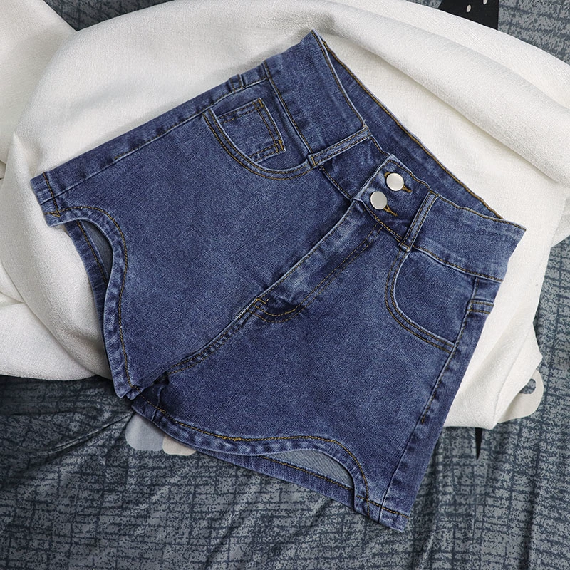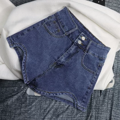 | nameOriginal | Hip-covering three-point high-waisted irregular curved denim shorts |