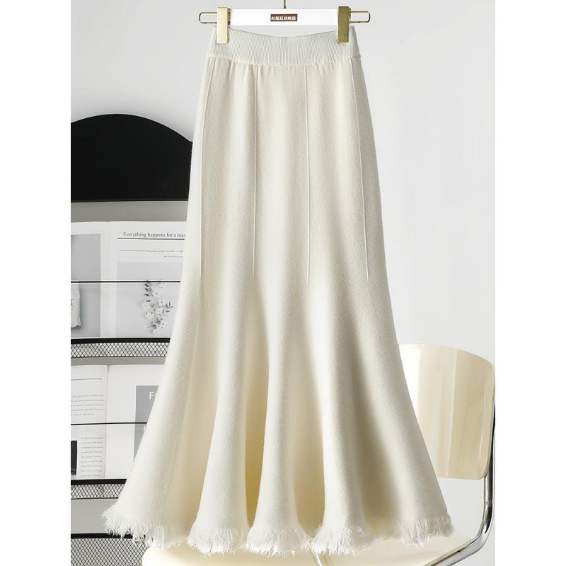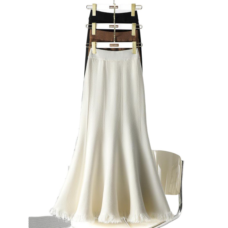 | nameOriginal | Hip Fishtail Skirt Women's Spring and Autumn 2024 New High Waist Slimming Mid-length New Tassel Knitted Dress |