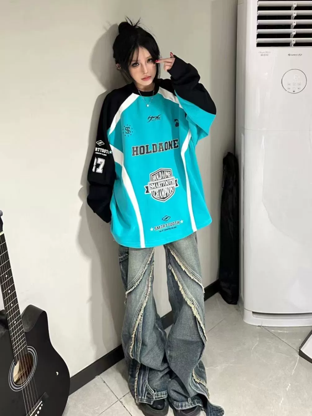 | nameOriginal | Hip-hop loose long-sleeved Harajuku style jazz retro jersey |