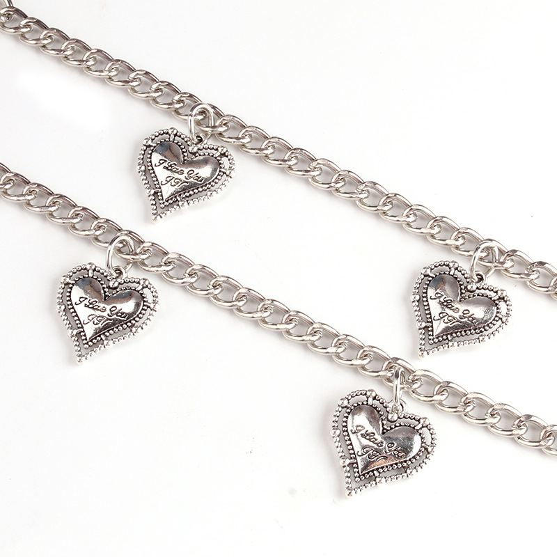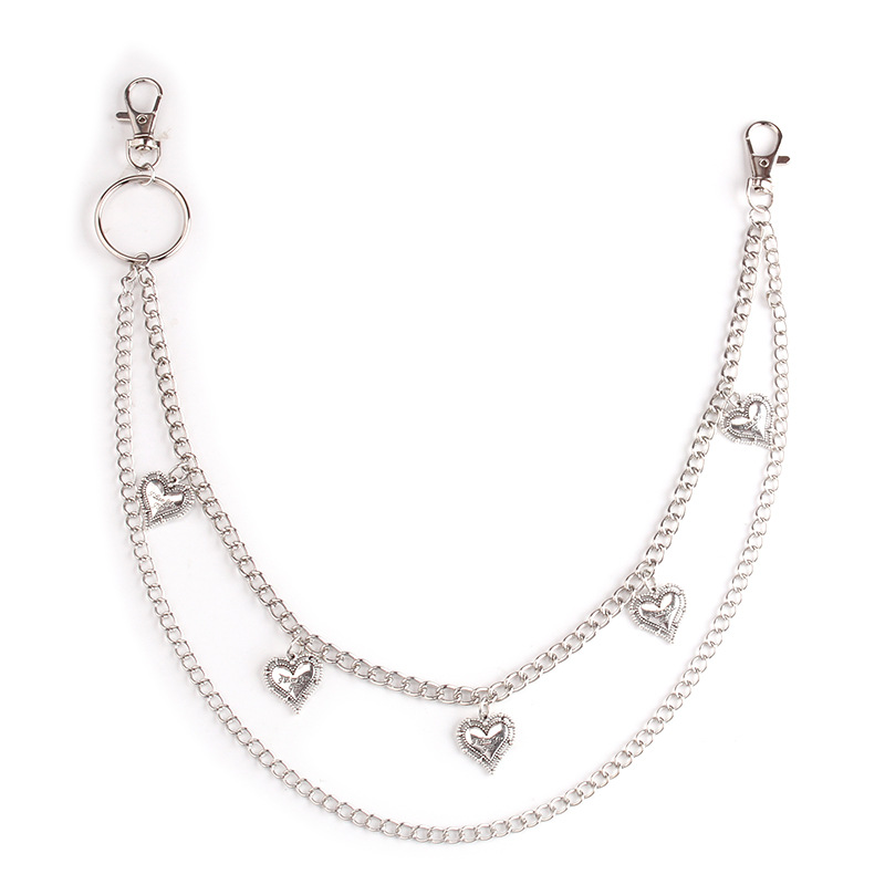 Hip-Hop Retro Double-Layer All-Match Peach Heart Pants Chain European and American ins Pants Hanging Chain Decorative Love Accessories Trendy for Men and Women