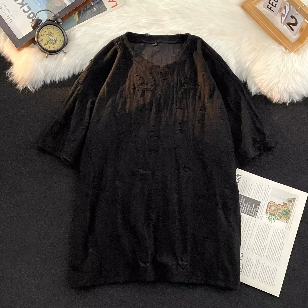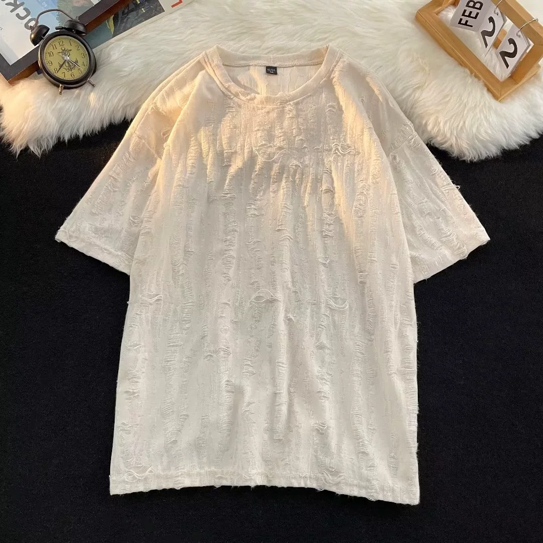 Hip-hop ripped high-end handsome retro short-sleeved T-shirt